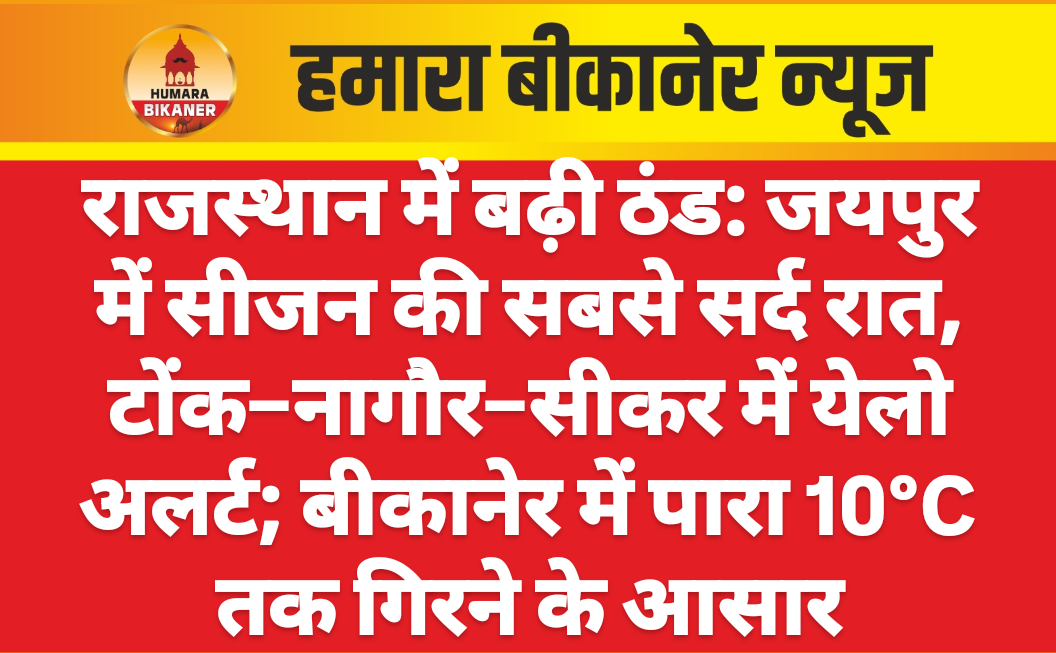 बीकानेर में सर्दी लगातार तेज होती जा रही है। पिछले एक सप्ताह से न्यूनतम तापमान में गिरावट का दौर जारी है, वहीं हवा की गुणवत्ता भी खराब श्रेणी में पहुंच गई है। मौसम में बढ़ती ठंड और खराब होती वायु-गुणवत्ता ने लोगों की दिक्कतें बढ़ा दी हैं। बीकानेर में पिछले सात दिनों से अधिकतम तापमान लगभग 30°C और न्यूनतम 13°C के आसपास दर्ज हो रहा है। बीती रात पारा गिरकर 12.8°C तक पहुंच गया।मौसम विभाग के अनुसार नवंबर के तीसरे और चौथे सप्ताह में यह 10°C या उससे नीचे जा सकता है। रात से सुबह 8-9 बजे तक सर्दी सबसे ज्यादा महसूस की जा रही है। दोपहर में तापमान फिर से बढ़कर 30°C तक पहुंच जाता है, जिससे दिन गर्म और रातें ठंडी हो रही हैं।