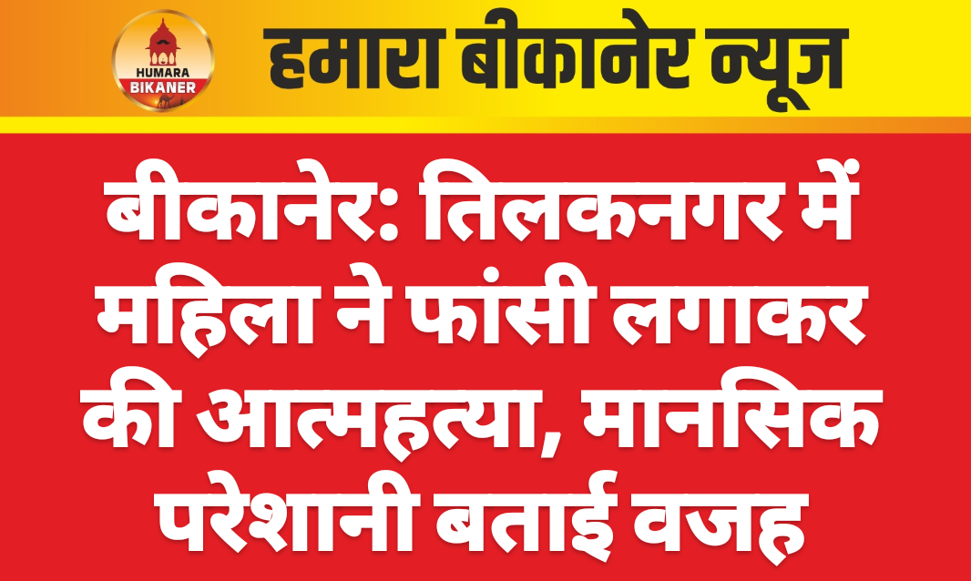 बीकानेर। शहर के जेएनवीसी थाना क्षेत्र के तिलकनगर में देर रात एक महिला द्वारा फांसी लगाकर आत्महत्या करने का मामला सामने आया है। घटना 13 नवंबर की रात करीब 2 बजे की बताई जा रही है। इस संबंध में तिलकनगर गली नं. 2 निवासी सोहन सिंह ने रिपोर्ट दर्ज कराई है। परिवादी ने बताया कि उसके भाई की पत्नी बूलबूल कंवर, जिनकी शादी 9 फरवरी 2007 को हुई थी, पिछले कुछ समय से मानसिक रूप से परेशान थीं।