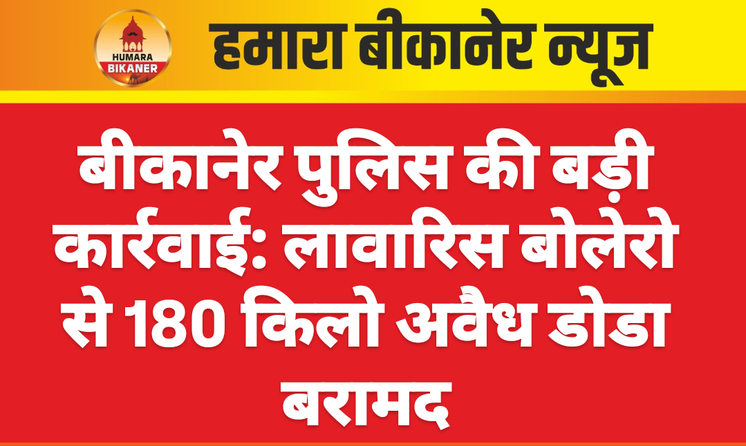 बीकानेर।बीकानेर पुलिस ने अवैध नशीले पदार्थो के खिलाफ बड़ी कार्रवाई करते हुए बड़ी मात्रा में अवैध डोडा जब्त किया है। यह कार्रवाई एसपी कावेन्द्र सागर के निर्देशन में नोखा थानाधिकारी अरविंद भारद्धाज की टीम ने डीएसटी की सूचना पर की है। पुलिस ने रोड़ा गांव के पास एक खाली जमीन में लावारिस हालात में बोलेरो खड़ी मिली।जिसे तलाशी लेने पर लावारिस खड़ी बोलेरो में 9 कट्टे भरे हुए मिले। जिन्हें जांच के दौरान कट्टों में करीब 180 किलो अवैध डोडा मिला। पुलिस ने आरजे-21 नंबर की बोलेरो और डोडा को जब्त कर लिया है। जानकारी के अनुसार टायर पंचर होने के कारण गाड़ी को सूनसान जगह पर खड़ा किया गया था। पुलिस अब गाड़ी के नंबर के आधार पर मालिक की तलाश में जुटी है।