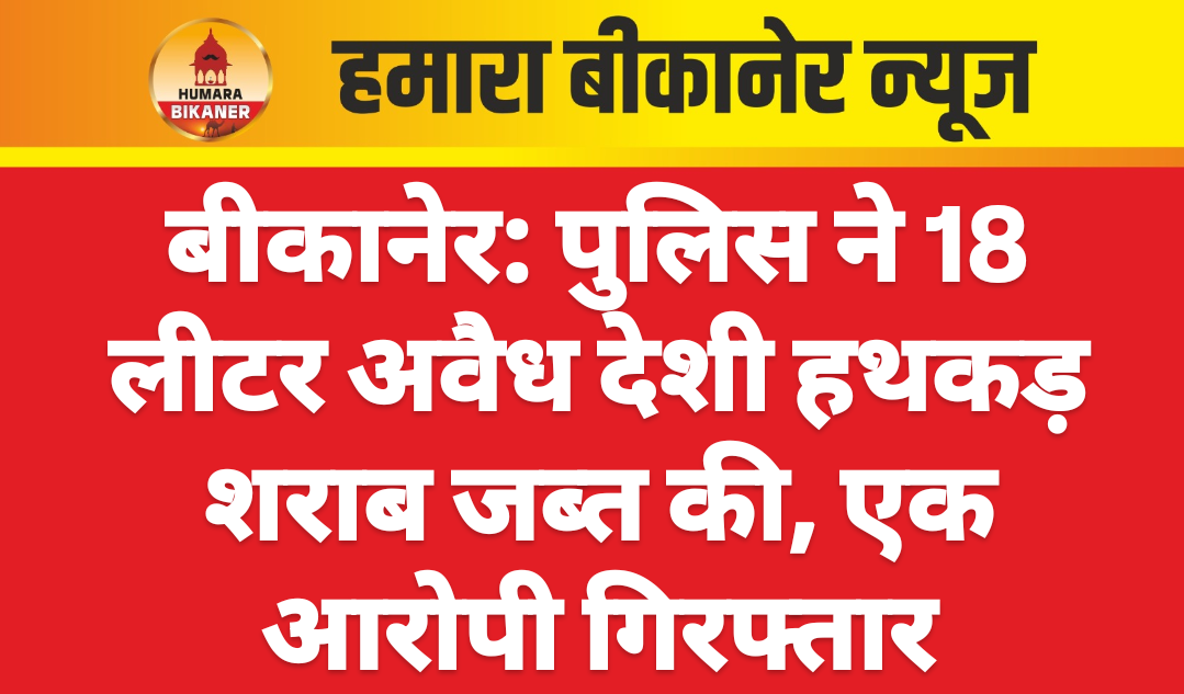 बीकानेर।पुलिस टीम ने अवैध देशी शराब हथकढ़ के खिलाफ कार्रवाई करते हुए एक को गिरफ्तार किया है।पुलिस टीम ने सूचना के आधार पर चक 4 आरजेडी में ढाणी में दबिश दी। जहां पर पुलिस ने मौके से अवैध देशी शराब हथकड़ कुल 18 लीटर जब्त की। पुलिस ने अवैध हथकड़ शराब के साथ रेशम सिंह को गिरफ्तार किया है। पुलिस ने आरोपी के खिलाफ आबकारी अधिनियम के तहत मुकदमा दर्ज कर जांच शुरू कर दी है।