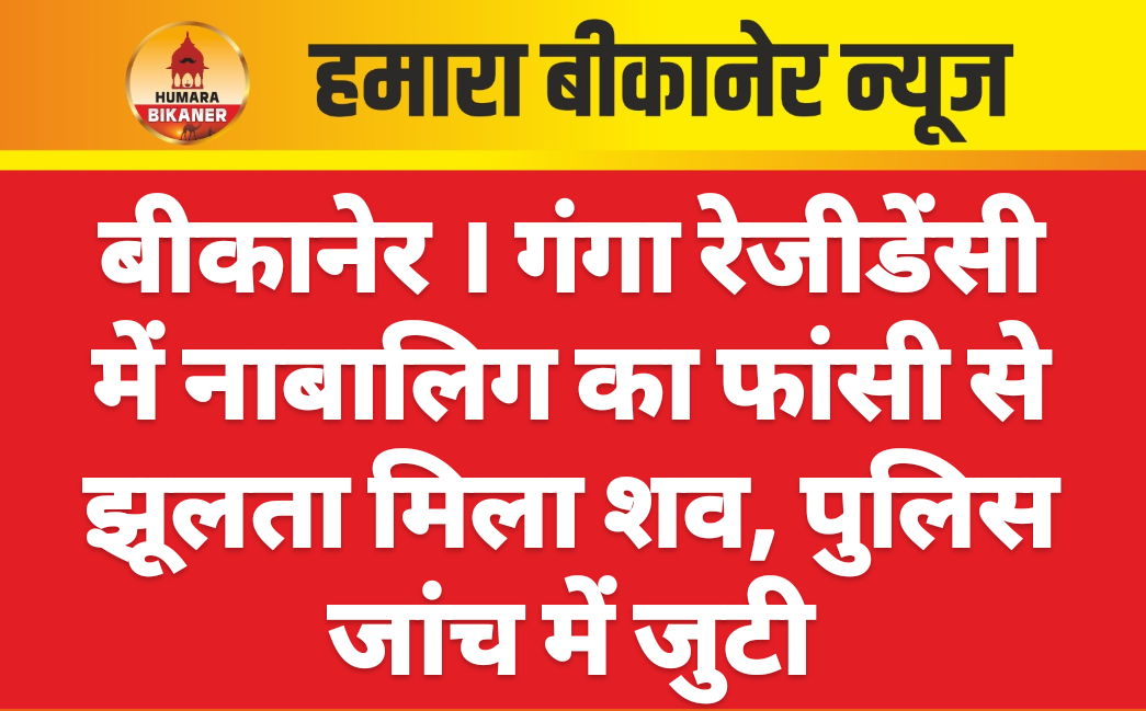 बीकानेर। गंगाशहर थाना क्षेत्र के सुजानदेसर में नाबालिग ने फांसी लगाकर आत्महत्या कर ली। घटना रविवार सांय करीब 5.45 बजे गंगा रेजीडेंसी के एक फ्लैट की है। जानकारी के अनुसार गंगा रेजीडेंसी फ्लैट के एक कमरे में करीब 15 वर्षीय बालक फंदे से झूलता हुआ मिला। सूचना मिलने के बाद मौके पर पहुंची पुलिस ने खिदमतगार ख़ादिम सोसाइटी के सोयब, मो. जुनैद खान और राजकुमार खडग़ावत की मदद से शव को नीचे उतार कर पीबीएम अस्पताल भिजवाया, जहां डॉक्टरी टीम ने शव का मुआयना कर उसे मोर्चरी में रखवाया। घटनास्थल पर गंगाशहर थाना पुलिस ने निरीक्षण किया। पुलिस घटना के कारणों की जांच में जुटी हुई है।
