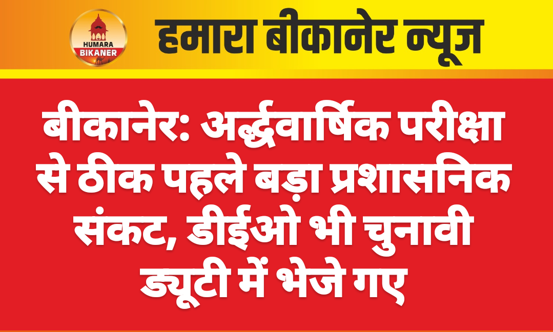 बीकानेर। पहली बार 20 नवंबर से राज्य स्तरीय अर्द्ध वार्षिक परीक्षा का आयोजन हो रहा है, लेकिन परीक्षा से ठीक पहले प्रशासनिक स्तर पर बड़ा संकट खड़ा हो गया है। अकेले शीर्ष अधिकारी को भी चुनावी कार्य में लगा दिया गया। गौरतलब है कि जिले के अधिकांश शिक्षकों की चुनावी ड्यूटी पहले ही लगी हुई है, लेकिन अब एकमात्र जिला शिक्षा अधिकारी (डीईओ) को भी चुनावी कार्य में भेज दिया गया है। डीईओ किशनदान चारण पर इस समय प्रारंभिक और माध्यमिक दोनों विभागों का कार्यभार है। वे दिन में दो दफ्तरों में काम बांटते हैं।