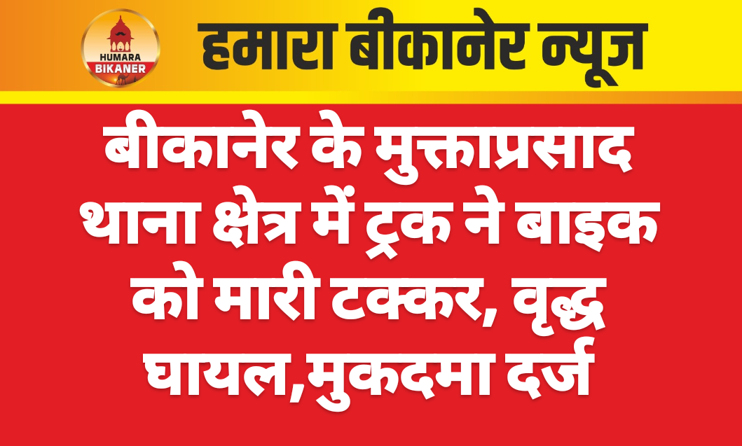 बीकानेर।ट्रक चालक द्वार बाइक को टक्कर मारने की खबर सामने आयी है। घटना मुक्ताप्रसाद पुलिस थाना क्षेत्र के सब्जी मंडी के सामने 16 नवंबर की सुबह 11 बजे के आसपास की है। इस सम्बंध में रामपुरा बस्ती निवासी राजेन्द्र तंवर ने ट्रक चालक के खिलाफ मुकदमा दर्ज करवाया है।प्रार्थी ने बताया कि ट्रक चालक ने लापरवाही से गाड़ी चलाते हुए उसके पिता रघुनाथ की बाइक को टक्कर मार दी। जिससे वह गिर गए और चोटिल हो गए। प्रार्थी ने बताया कि उसके पिता बजरंग धारा की तरफ जा रहे थे। इसी दौरान पीछे से ट्रक चालक ने टक्कर मार दी। पुलिस ने प्रार्थी की रिपोर्ट के आधार पर मुकदमा दर्ज कर जांच शुरू कर दी है।