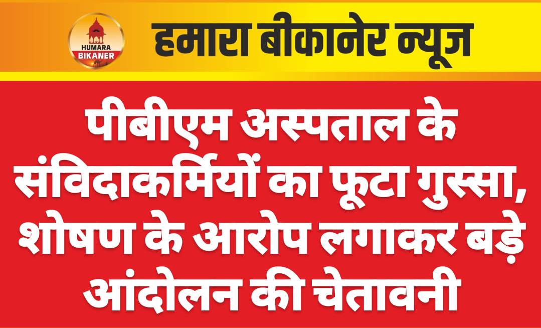 बीकानेर।बीकानेर के सबसे बड़े चिकित्सा संस्थान पीबीएम अस्पताल में संविदा पर कार्यरत कर्मचारियों ने प्रशासन और ठेकेदारों पर गंभीर आरोप लगाते हुए बड़ा आंदोलन खड़ा करने की चेतावनी दी है। कर्मचारियों का आरोप है कि वर्षों से उनके साथ खुलेआम शोषण किया जा रहा है, लेकिन आवाज उठाने पर नौकरी से निकालने की धमकी देकर उन्हें चुप करा दिया जाता है।
