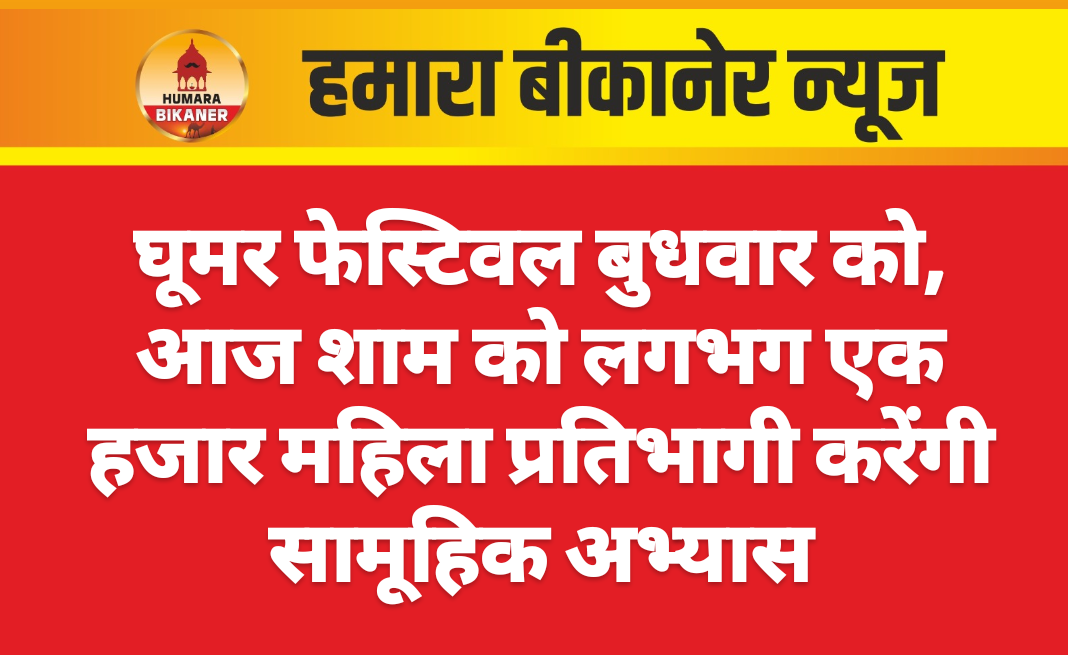 बीकानेर, 17 नवंबर। घूमर फेस्टिवल का सामूहिक पूर्वाभ्यास मंगलवार सायं 4:30 बजे डॉ. करणी सिंह स्टेडियम में होगा। जहां लगभग एक हजार महिला प्रतिभागियों द्वारा सामूहिक अभ्यास किया जाएगा।