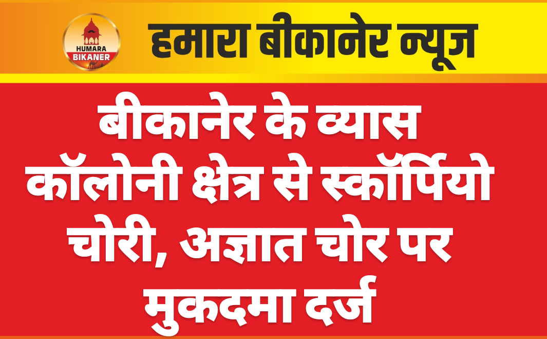 बीकानेर।शहर के व्यास कॉलोनी पुलिस थाना क्षेत्र में स्कॉर्पियो चोरी होने का मामला सामने आया है। इस संबंध में हरियाणा हाल सांई अपार्टमेंट पवनपुरी निवासी नीरज जाखड़ ने अज्ञात के खिलाफ मुकदमा दर्ज कराया है। परिवादी ने बताया कि स्कॉर्पियो गाड़ी आरजे 07 यूए 9306 जो कि पवनपुरी सड़क पर खड़ी थी, जिसे रात को अज्ञात व्यक्ति चोरी कर ले गया। पुलिस ने मामला दर्ज कर जांच शुरू कर दी। मामले की जांच एएसआई भवानीदान को सौंपी गई है।