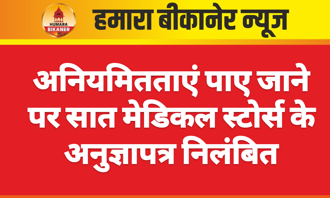 बीकानेर, 18 नवम्बर। जांच के दौरान विभिन्न अनियमितताएं पाए जाने पर सात मेडिकल स्टोर्स के अनुज्ञापत्र निलम्बित किए गए हैं।
