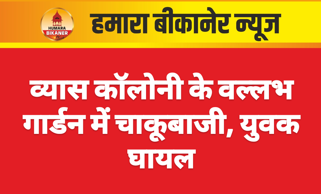 बीकानेर। शहर के व्यास कॉलोनी थाना इलाके के वल्लभ गार्डन क्षेत्र में चाकूबाजी की खबर सामने आयी है। बताया जा रहा है कि रात करीब दस बजे के आसपास वल्लभ गार्डन क्षेत्र में चाकूबाजी हुई, जिसमें एक युवक चोटिल हो गया। जिसे अस्पताल ले जाया गया है। जहां पर इलाज के बाद उसे डिस्चार्ज कर दिया गया है। फिलहाल विवाद के कारणों के बारे में जानकारी नहीं मिल पायी है।