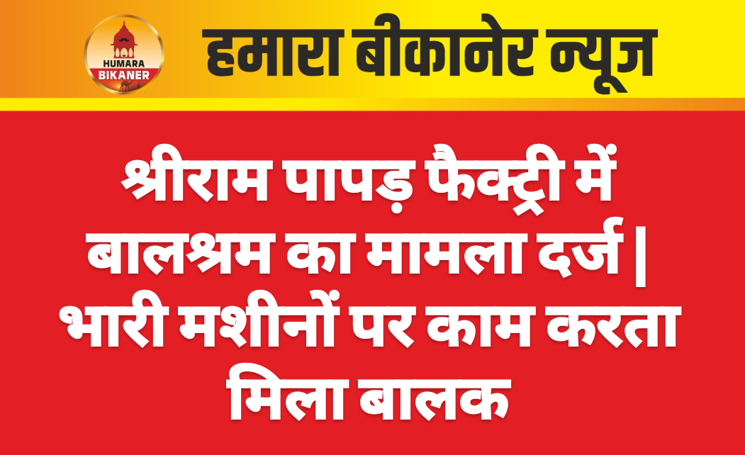 बीछवाल औद्योगिक क्षेत्र स्थित श्रीराम पापड़ प्राइवेट लिमिटेड फैक्ट्री में बालश्रम करवाने का मामला सामने आया है। इस संबंध में मानव तस्करी एवं गुमशुदा व्यक्ति प्रकोष्ठ के कांस्टेबल रामनिवास द्वारा बीछवाल पुलिस थाने में सादुलगंज निवासी रमेश पुत्र स्व. दाउलाल सिंघी के खिलाफ मुकदमा दर्ज कराया गया है। रिपोर्ट के अनुसार बीछवाल औद्योगिक क्षेत्र में स्थित श्रीराम पापड़ प्राइवेट लिमिटेड फैक्ट्री में मैनुफैक्चरिंग पैकेजिंग स्टोर व अन्य अनुभागों को चैक किया तो वहां पर एक बालक बालश्रम करता हुआ मिला, जिसकी कांस्टेबल रामनिवास से सरकारी कैमरों से वीडियोग्राफी करवायी गई, बालक फैक्ट्री में भारी मशीनों से फूड पैकेट भरने का कार्य कर रहा था। ऐसे में पुलिस ने 3,7,11,14 बालक और कुमार श्रम (प्रतिषेध और विनियमन) अधिनियम 1986 व 79 जे जे एक्ट 2015 व 146 बीएनएस-2023 के तहत मुकदमा दर्ज कर जांच एसआई मंजीत कौर को सौंपी गई है।