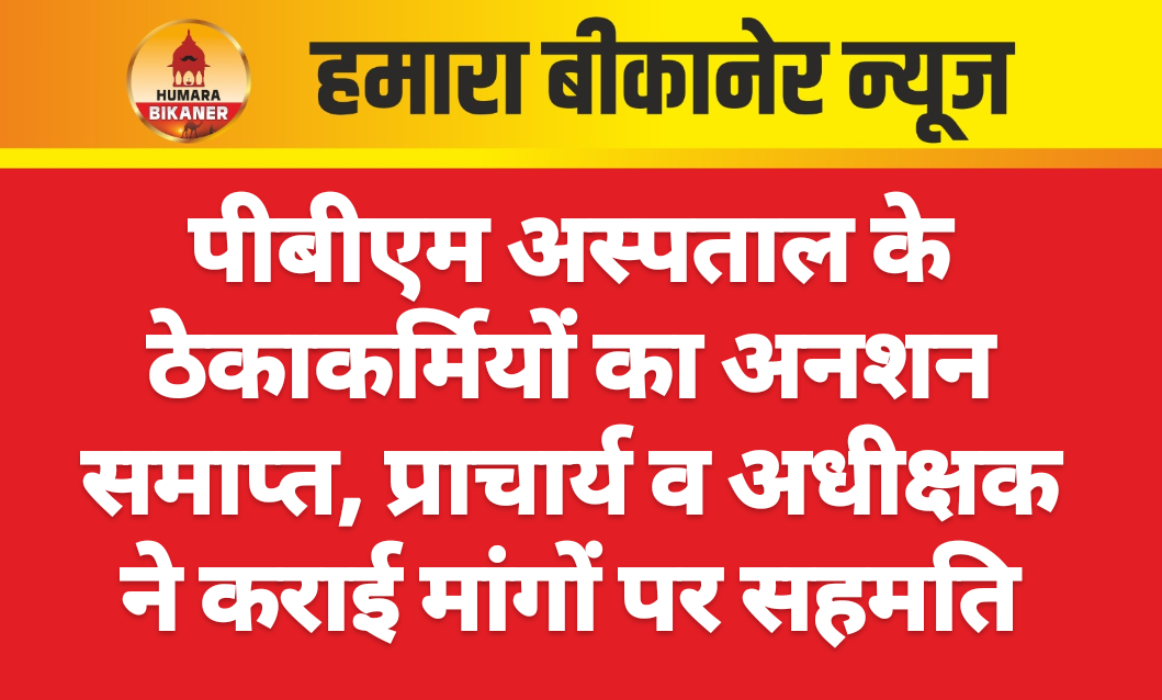 बीकानेर। मेडिकल कॉलेज प्राचार्य डॉ. सुरेन्द्र वर्मा व पीबीएम अधीक्षक डॉ. बी.सी. घीया के साथ शनिवार को पीबीएम अस्पताल के ठेकाकर्मियों ने सफल वार्ता के बाद अनशन समाप्त कर दिया। डॉ. वर्मा व डॉ. घीया ने दो दिनों से कार्मिक अनशन पर बैठे पीबीएम अस्पताल के ठेकाकर्मियों के साथ अनशन स्थल पर पहुंचकर वार्ता की। वार्ता सफल होने के बाद कार्मिक अनशन पर बैठे कर्मचारियों को ज्यूस पिलाकर अनशन समाप्त करवाया। डॉ. वर्मा ने कहा कि कर्मचारियों की मांगों को सुना गया और उनसे समझाईश की गई कि आगामी दिनों में उनकी मांगों पर काम होगा। जिसके बाद कार्मिक मान गए और कार्मिक अनशन को समाप्त करते हुए धरना समाप्त कर दिया। डॉ. वर्मा ने बताया कि मौके पर ठेकेदार को भी बुला लिया गया और उनसे भी रिकॉर्ड मांगा गया है, अगर नहीं देता तो आरटीआई के तहत जवाब मांगा जाएगा।