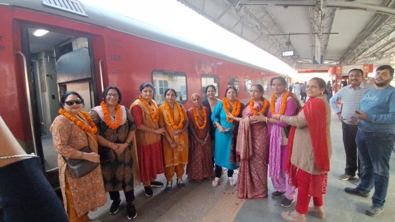 महिला पतंजलि की सोशल मीडिया राज्य प्रभारी एवं राज्य कार्यकारिणी राजस्था श्रीमती सुनीता गुर्जर जी ने बीकानेर और अन्य जिलों की बहनों को माला पहना कर गुरु धाम के लिए विदा किया