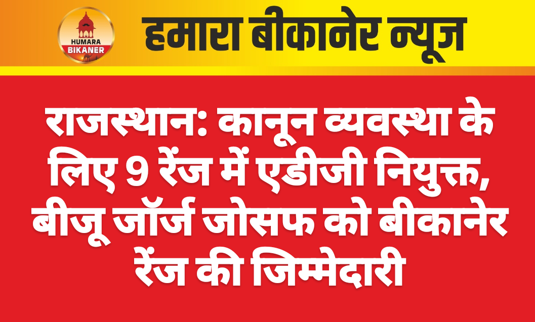 बीकानेर। प्रदेश में कानून व्यवस्था की निगरानी के लिए अधिकारियों को नियुक्त किया गया है। प्रदेश की सभी 9 रेंज में एडीजी रैंक के अधिकारियों को नियुक्त किया गया है। एडीजी कानून-व्यवस्था ने शनिवार रात एक आदेश जारी किए हैं। आदेश के अनुसार, एडीजी प्रशाखा माथुर को जयपुर कमिश्नरेट का प्रभारी बनाया गया है। बीजू जॉर्ज जोसफ को बीकानेर रेंज, संजीव कुमार नार्जरी को उदयपुर रेंज और विशाल बंसल को जोधपुर कमिश्नरेट की जिम्मेदारी दी गई है।