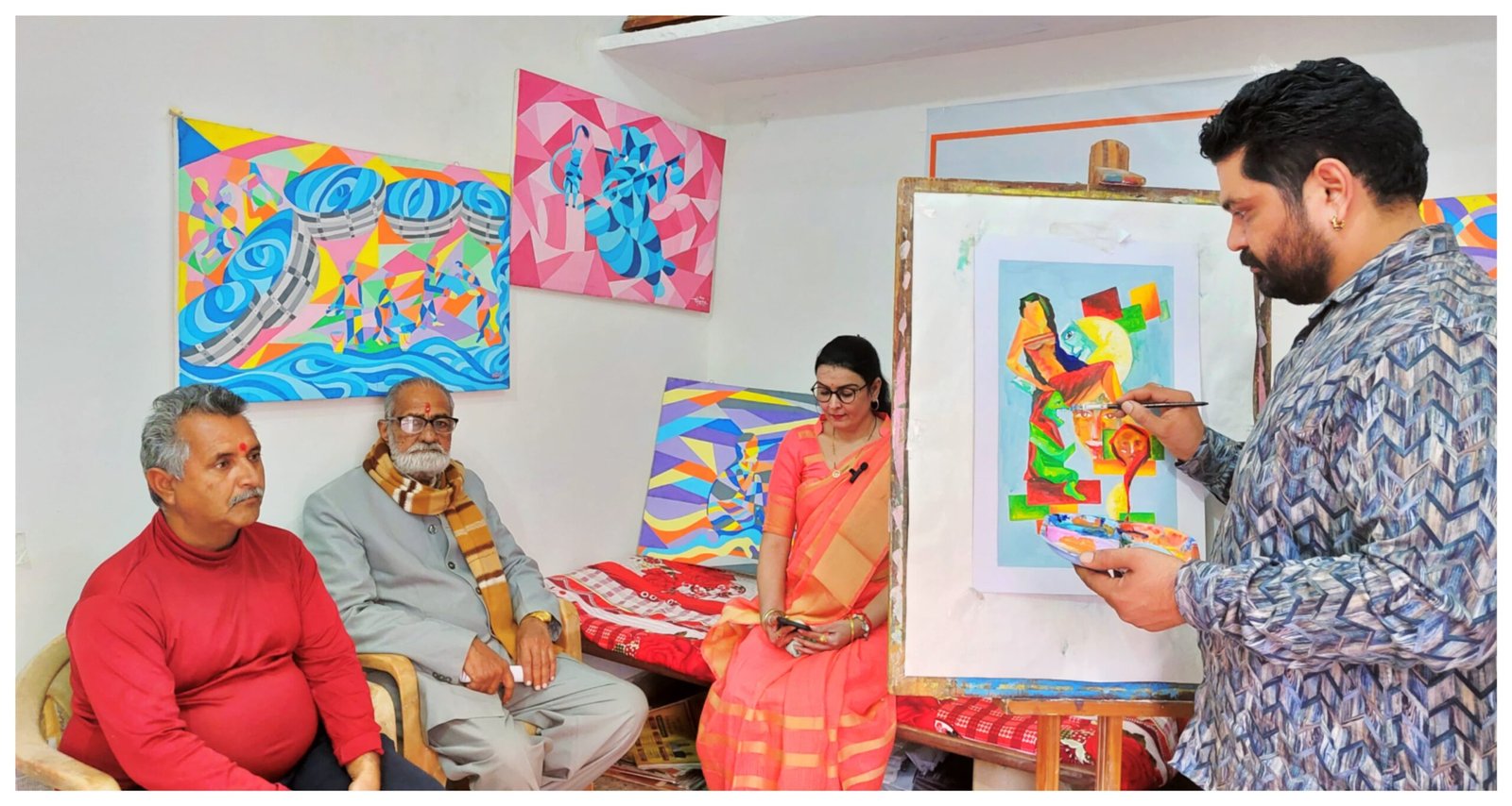 बीकानेर । शब्दमय रंग संस्थान की कला श्रृंखला 10 में मुख्य अथिति कवियत्री विनता शर्मा रहे जिनकी कविता ” “अस्तित्व बौद्ध के मुखोटे” के वाचन पर चित्र संयोजन चित्रकार राम कुमार भादाणी द्वारा किया गया। पेंटिंग्स में कविता की गहराइयों को उकेरने की अद्वितीय क्षमता है, जो कला दर्शकों को मंत्रमुग्ध कर देती है।
