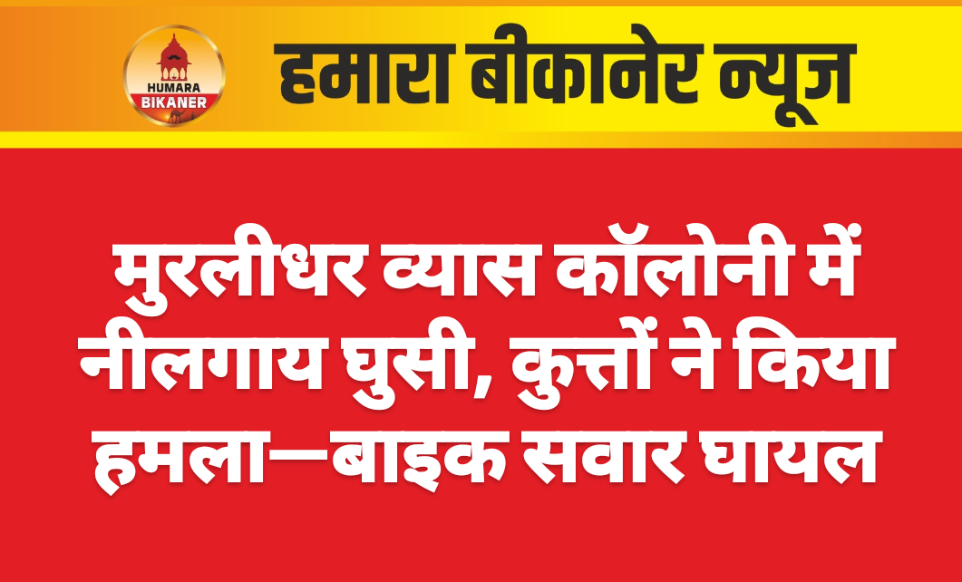 बीकानेर।शहरी क्षेत्र में नील गाय के घुस जाने से अफरा तफरी मच जाने की खबर सामने आयी है। घटना मुरलीधर व्यास कॉलोनी में बीती रात की है। जहां पर बीती रात को अचानक ही गलियों नील गाय दिखी। जिसके पीछे कुते पड़ गए। जानकारी के अनुसार करीब आधा दर्जन वन्य जीवों को एक साथ देखकर स्थानीय निवासी तो एकबारगी अंचभे में पड़ गए। इस दौरान कुतों ने नील गाय पर हमला कर दिया। इस दौरान नील गाय और कुतों की भागमभाग में बाइक सवार भी चपेट में आ गया। गनीमत रही कि बाइक सवार को हल्की चोटें ही आई। शहरी क्षेत्र में नील गाय को देखकर हर कोई अचंभित नजर आया कि आखिर यहां पर नील गाय कैसे आ गयी।