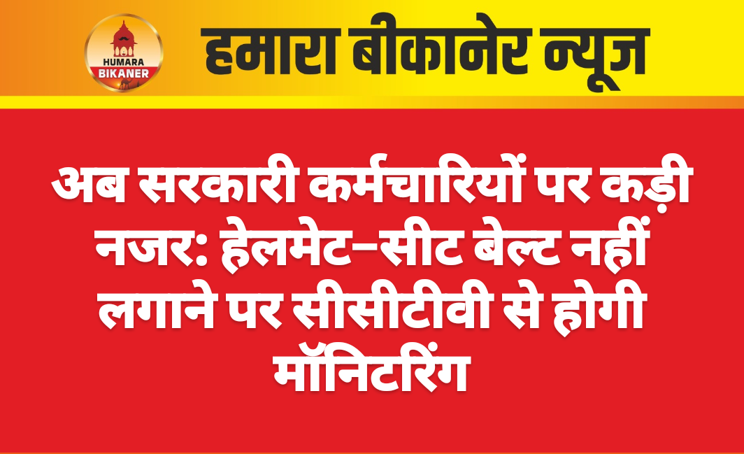 बीकानेर। राज्य में बढ़ते सड़क हादसों को देखते हुए हेलमेट और सीट बेल्ट लगाने के लिए सरकारी कर्मचारियों को पाबंद किया गया है। जयपुर पुलिस मुख्यालय से डीजी प्रशिक्षण एवं यातायात अनिल पालीवाल ने इस संबंध में आदेश जारी किए हैं। अब हेलमेट और सीट बेल्ट नहीं लगाने वाले सरकारी कर्मचारियों की निगरानी सीसीटीवी कैमरों से की जाएगी। इसकी मॉनिटरिंग के लिए सभी सरकारी विभागों के मेन गेट पर सीसीटीवी कैमरे लगाने को कहा गया है। प्रवेश द्वार पर एक रजिस्टर भी मेनटेन किया जाएगा, जिसमें दुपहिया वाहन पर हेलमेट नहीं लगाने और फोर व्हीलर में सीट बेल्ट नहीं लगाने वालों के नाम दर्ज होंगे।