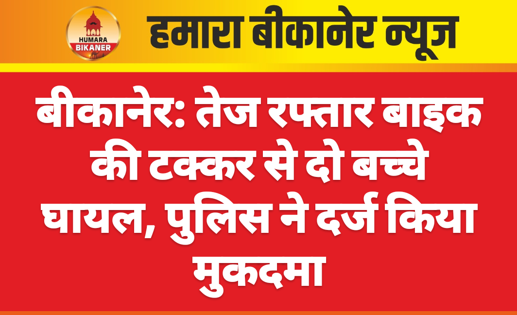 बीकानेर।बाइक चालक द्वारा लापरवाही से गाड़ी चलाते हुए साइकिल सवार बच्चों को टक्कर मारने की खबर सामने आयी है। घटना मुक्ताप्रसाद पुलिस थाना क्षेत्र के 6 नंबर डेयरी के पास 21 नवंबर की दोपहर को 1 बजे के आसपास की है। इस सम्बंध में कमलेश रत्रा पत्नी रामनारायण ने बुलेट बाइक चालक के खिलाफ मुकदमा दर्ज करवाया है।प्रार्थिया ने बताया कि बाइक सवार ने लापरवाही और तेज गति से बाइक को चलाते हुए उसके बच्चों की साइकिल को टक्कर मार दी। जिससे उसके बच्चे गिर गए और चोटिल हो गए। प्रार्थिया ने बताया कि इस हादसे में उसकी बेटी के गंभीर चोटें आयी है। जिसे अस्पताल में भर्ती करवाय गया। जहां पर उसके पैर का ऑपरेशन किया गया है। वहीं उसके बेटे के हल्की चोटें आयी है। पुलिस ने प्रार्थिया की रिपोर्ट के आधार पर मुकदमा दर्ज कर जांच शुरू कर दी है।