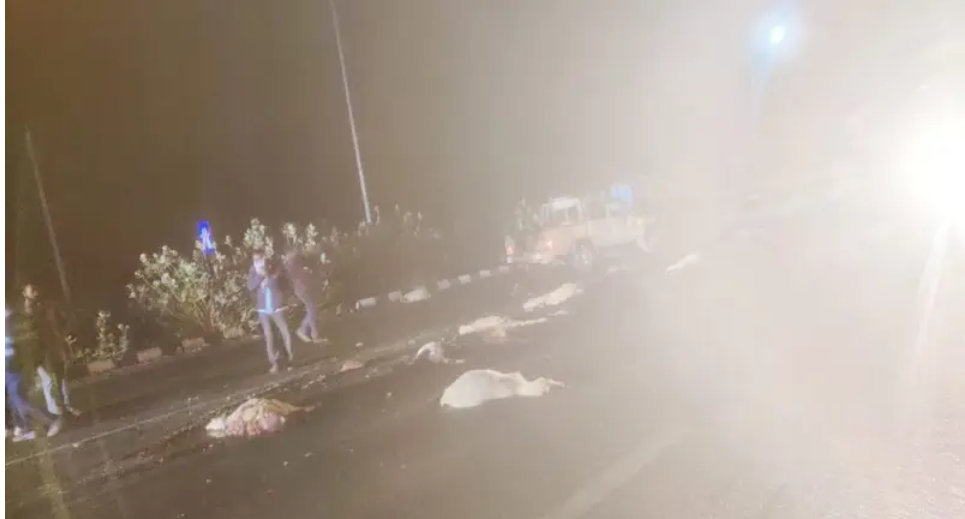 बीकानेर। सड़क हादसे में करीब डेढ़ दर्जन भेड़ों को मौत हो जाने की खबर सामने आई है। घटना भारतमाला पर देशनोक-बीकानेर रोड की बताई जा रही है। जहाँ सड़क पर 17 भेड़े मृत अवस्था में मिली है।सूचना मिलते ही पुलिस टीम मौके पर पहुंची और जाँच में जुटी है। हादसे के बाद सड़क पर चारों तरफ़ खून ही खून से सनी भेड़े मृत अवस्था में मिली। प्रथम दृष्ट्या वाहन की टक्कर से भेड़ों की मौत होने की जानकारी सामने आई है।
