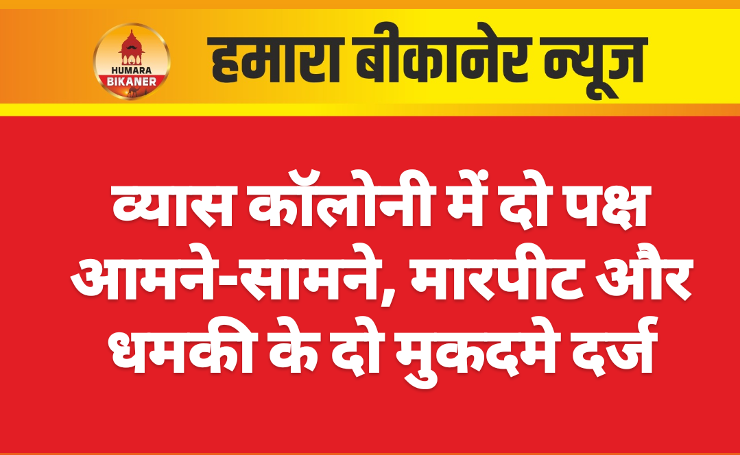 बीकानेर। आपसी रंजिश में युवक से मारपीट का मामला व्यास कॉलोनी पुलिस थाने में दर्ज कराया गया है। राजनगर निवासी फूसी देवी की ओर से पुलिस को दी गई रिपोर्ट में बताया गया है कि उसका पुत्र विकास व्यास कॉलोनी सर्किल से साइंस पार्क की ओर जा रहा था। इस दौरान नवीन गोदारा, हरिओम व अन्य एक्टिवा पर आए और विकास का फोन छीनकर मारपीट की। दांतों से काट खाया।बाद में हड़मान मूंड, गजेन्द्र मूंड ने घर में घुसकर जान से मारने की धमकी दी। पूर्व में खेतपाल, नवीन, मुखराम, सचिन व गौरीशंकर ने पुत्र हर्षित के साथ भी मारपीट की थी। पुलिस ने मुकदमा दर्ज किया है। गौरतलब है कि दूसरे पक्ष की ओर से भी व्यास कॉलोनी पुलिस थाने में मुकदमा दर्ज कराया गया था।