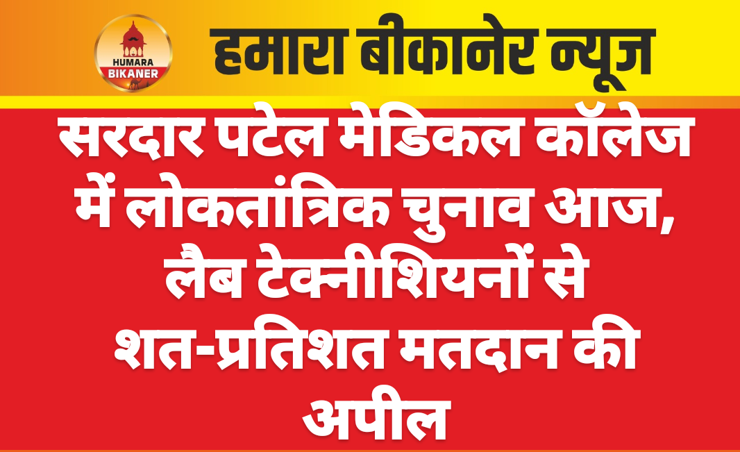 बीकानेर।सरदार पटेल मेडिकल कॉलेज बीकानेर अध्यक्ष चुनाव 27 नवम्बर 2025 को सुनिश्चित होने जा रहे है। चुनाव कमेटी के संयोजक अरविंद सिंह शेखावत व कमलेश कुमार व्यास के द्वारा जानकारी दी गई है की चुनाव प्रक्रिया के लिए प्रधानाचार्य द्वारा कमिटी का गठन किया गया है। जिसके नोडल अधिकारी डॉ विनोद कुमार छींपा विभागाध्यक्ष फ़ार्मोकॉलोजी एवम प्रशासन अधिकारी संजय गहलोत व लेखाधिकारी सुनील दिवाकर को मतदान अधिकारी नियुक्त किया गया है।इस दौरान नामांकन दाखिल करने की दिनांक 27 नवम्बर 2025 सुबह 10.00 ए.एम से 11.00 ए.एम बजे तथा फ़ार्म चेक करने का समय 11.00 ए.एम. से 11.30 ए.एम तक नामांकन वापस लेने का समय 11.30 ए.एम से 12.15 पी.एम तथा मतदान का समय 1.00 बजे से 4.15 बजे तक लोकतांत्रिक तरीके से सम्पन्न करवाये जायेगे, साथ ही चुनाव का परिणाम भी उसी दिन घोषित किया जायेगा ( समस्त लैब टेक्नीशियन को शत प्रतिशत मतदान करने की अपील की ताकि लोकतांत्रिक तरीके से मतदान प्रक्रिया पूर्ण की जा सके।