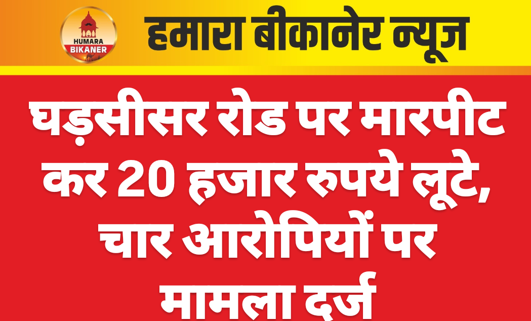 बीकानेर।मारपीट कर हजारों रूपए की नकदी छीनने का मामला सामने आया है। इस सम्बंध में गंागशहर पुलिस थाने में सरस्वती नगर निवासी खलील अहमद ने सर्वोदय बस्ती निवासी समीर, वसीम, दीपक व अलताफ के खिलाफ मुकदमा दर्ज कराया है। परिवादी ने बताया कि 26 नवंबर को घड़सीसर रोड़ पर आरोपियों ने मिलकर उसके साथ मारपीट की और पेंट की जेब से 20 हजार रुपए निकालकर ले गए। आरोप है कि आरोपियों ने उसे धमकी भी दी। पुलिस ने परिवादी की रिपोर्ट पर विभिन्न धाराओं में मामला दर्ज किया, जिसकी जांच एएसआई अशोक सांदु को सौंपी गई है।