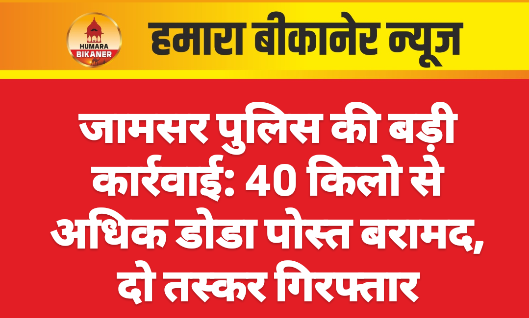 बीकानेर। पुलिस थाना जामसर ने एरिया डोमिनेशन अभियान के तहत एक बड़ी सफलता हासिल करते हुए एनडीपीएस एक्ट में दोतस्करों को गिरफ्तार कर डोडा पोस्त बरामद किया है। पुलिस ने आरोपियों के कब्जे से 40 किलो 208 ग्राम डोडा पोस्त तथा तस्करीमें प्रयुक्त कार को भी जप्त किया।यह कार्रवाई पुलिस मुख्यालय व बीकानेर रेंज के महानिरीक्षक पुलिस हेमन्त कुमार शर्मा एवं जिला पुलिस अधीक्षक कावेन्द्र सिंह सागर के निर्देशन में चलाए जा रहे अवैध हथियार और मादक पदार्थ विरोधी विशेष अभियान के तहत की गई।थानाधिकारी रवि कुमार के नेतृत्व में गठित टीम ने निजी स्तर पर सूचना संकलित कर 29 नवंबर को नुरसर फांटा क्षेत्र में दबिश दी। पुलिस ने मौके से रविन्द्र सिंह उर्फ रवि, पुत्र कालासिंह, मजबी सिख, निवासी केसरीसिंहपुर व नानक सिंह पुत्र छोटू सिंह, निवासी करणपुर, श्रीगंगानगर को गिरफ्तार कर उनके कब्जे से मादक पदार्थ बरामद किया। पुलिस ने मौके से तस्करी में प्रयुक्त कार भी जब्त की।पुलिस ने आरोपियों के खिलाफ एनडीपीएस एक्ट में मुकदमा दर्ज किया। मामले की जांच भोलाराम थानाधिकारी पुलिस थाना कालू द्वारा की जा रही है। पुलिस आरोपियों से नेटवर्क, सप्लाई रूट और अन्य सहयोगियों की जानकारी को लेकर गहन पूछताछ कर रही है। कार्रवाई में कांस्टेबल रविन्द्र कुमार की विशेष भूमिका रही। कार्रवाई करने वाली टीम में थानाधिकारी रवि कुमार, हेड कांस्टेबल बलवान सिंह, धर्माराम, कांस्टेबल रामनिवास, रविन्द्र कुमार, सुनिल कुमार शामिल थे।