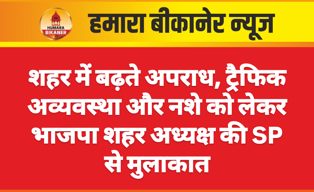बीकानेर। शहर में लगातार बढ़ रही चोरी की घटनाओं, यातायात अव्यवस्था और नशे के बढ़ते प्रभाव को लेकर भाजपा शहर अध्यक्ष सुमन छाजेड़ ने पुलिस अधीक्षक कावेंद्र सिंह से मुलाकात की।