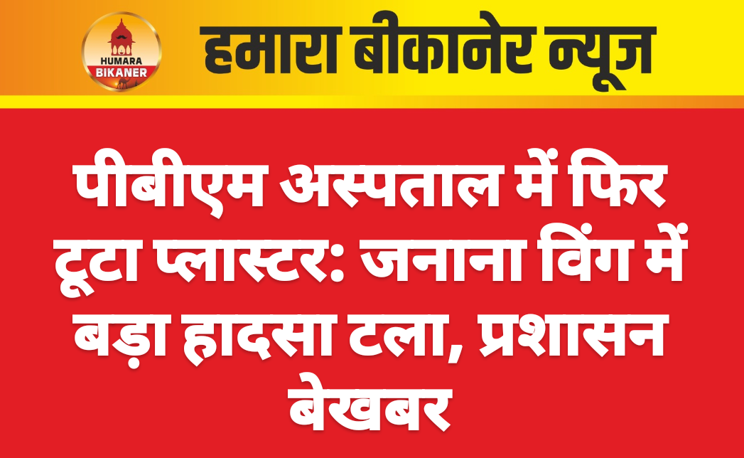 बीकानेर। पीबीएम हॉस्पिटल में बुनियादी ढांचे की खराब स्थिति एक बार फिर सामने आई है। मंगलवार रात जनाना विंग में अचानक छत का प्लास्टर बड़े हिस्से में भरभराकर गिर गया। सौभाग्य से उस समय वहां कोई मौजूद नहीं था, जबकि ठीक नीचे महिलाओं के बैठने की टेबल रखी हुई है। यदि यह घटना दिन में होती, तो गंभीर चोट या जनहानि की आशंका से इनकार नहीं किया जा सकता था।
