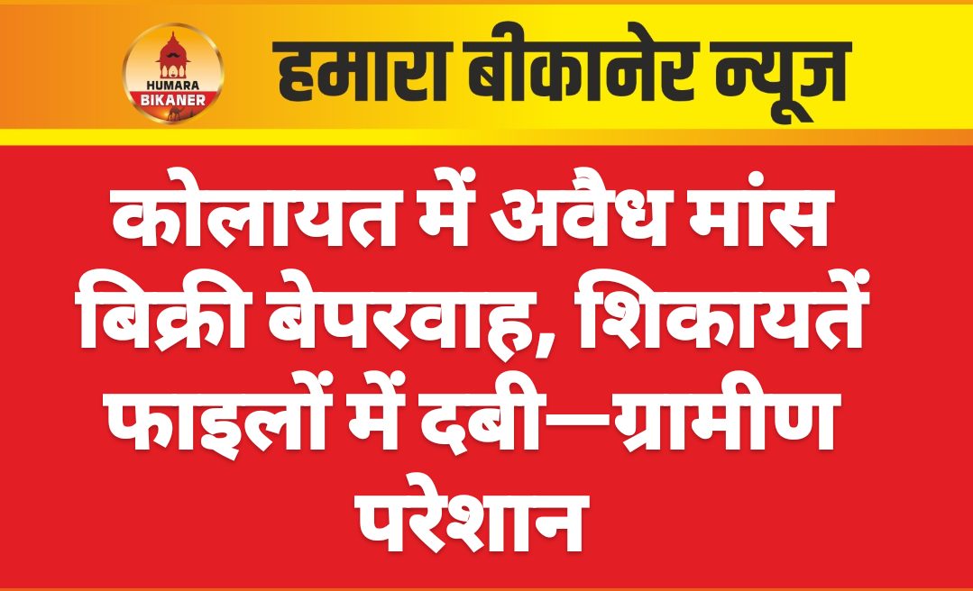 बीकानेर। कोलायत क्षेत्र में अनधिकृत मीट-मांस कारोबार के बढ़ते जाल ने ग्रामीणों का सब्र तोड़ दिया है। हांडला मार्ग, झझु रोड और पंचायत समिति क्षेत्र के आस-पास बिना अनुमति चल रही दुकानों ने स्थानीय लोगों को स्वास्थ्य जोखिम और गंदगी जैसी दोहरी समस्या में डाल दिया है। ग्रामीणों का कहना है कि कई दुकानों पर न तो स्वच्छता का ध्यान रखा जा रहा है और न ही किसी प्रकार का लाइसेंस प्रदर्शित किया जाता है। खुले में मांस कटने से आसपास का माहौल दूषित हो रहा है और परिवार दुर्गंध व अस्वच्छता से परेशान हैं।