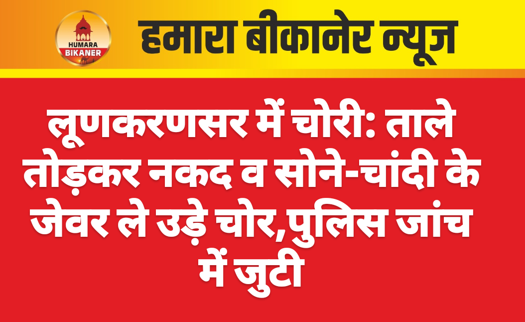 बीकानेर। लूणकरणसर में बीती रात अज्ञात चोरों ने वार्ड नंबर आठ में स्थित एक बंद घर को निशाना बनाया। परिवार में मृत्यु होने के कारण घर के सदस्य दूसरे घर गए हुए थे। सुबह लौटने पर उन्होंने देखा कि कमरे के ताले टूटे पड़े हैं और अंदर अलमारी का ताला भी टूटा मिला। वहीं कमरा पूरी तरह बिखरा हुआ था। घर के मालिक मनसा राम नाई ने बताया कि अलमारी से पांच हजार रुपये नकद, सोने-चांदी के जेवरात तथा अन्य सामान गायब मिला है। घटना की जानकारी पर टाइगर फोर्स टीम तथा पुलिस मौके पर पहुंची और पुलिस ने स्थिति का मौका मुआयना किया।