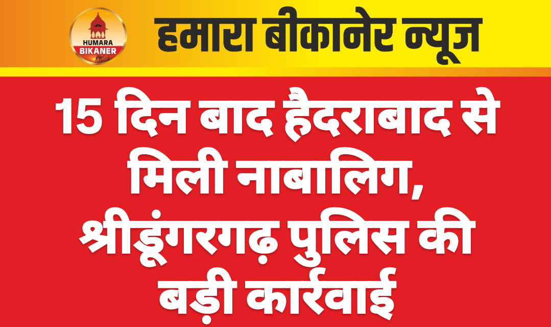 बीकानेर।नाबालिग को भगा ले जाने के मामले में पुलिस ने कार्रवाई करते हुए युवती को हैदराबाद से दस्तयाब किया गया है। घटना 19 नवंबर से जुड़ी है। जहां पर श्रीडूंगरगढ़ क्षेत्र में आरोपी नाबालिग को भगा ले गया। पुलिस ने मामले की जांच शुरू की और मामले की जांच हेडकांस्टेबल देवाराम को सौंपी गई। हेडकांस्टेबल देवाराम, कांस्टेबल रविन्द्र व उनकी टीम ने मुखबिर, साइबर साक्ष्यों को एकत्र करते हुए 15 दिनों बाद हैदराबाद से युवती को दस्तयाब किया है।पुलिस टीम को जांच के दौरान सूचना मिली की नाबालिग की लोकेशन हैदराबाद में है। पुलिस टीम हैदराबाद के हलवाल क्षेत्र पहुंची, जहां से युवती को दस्तयाब करते हुए श्रीडूंगरगढ़ लेकर पहुंची। नाबालिग को शुक्रवार शाम को नारी निकेतन भेज दिया गया। अभी तक प्राप्त जानकारी के अनुसार युवती को घर से ले जाने में आरोपी युवक की बहन भी शामिल थी, जिसका पति हैदराबाद में मजदूरी का काम करता है। जिसके पास ही युवक नाबालिग को लेकर पिछले 10 दिनों से रुका हुआ था।