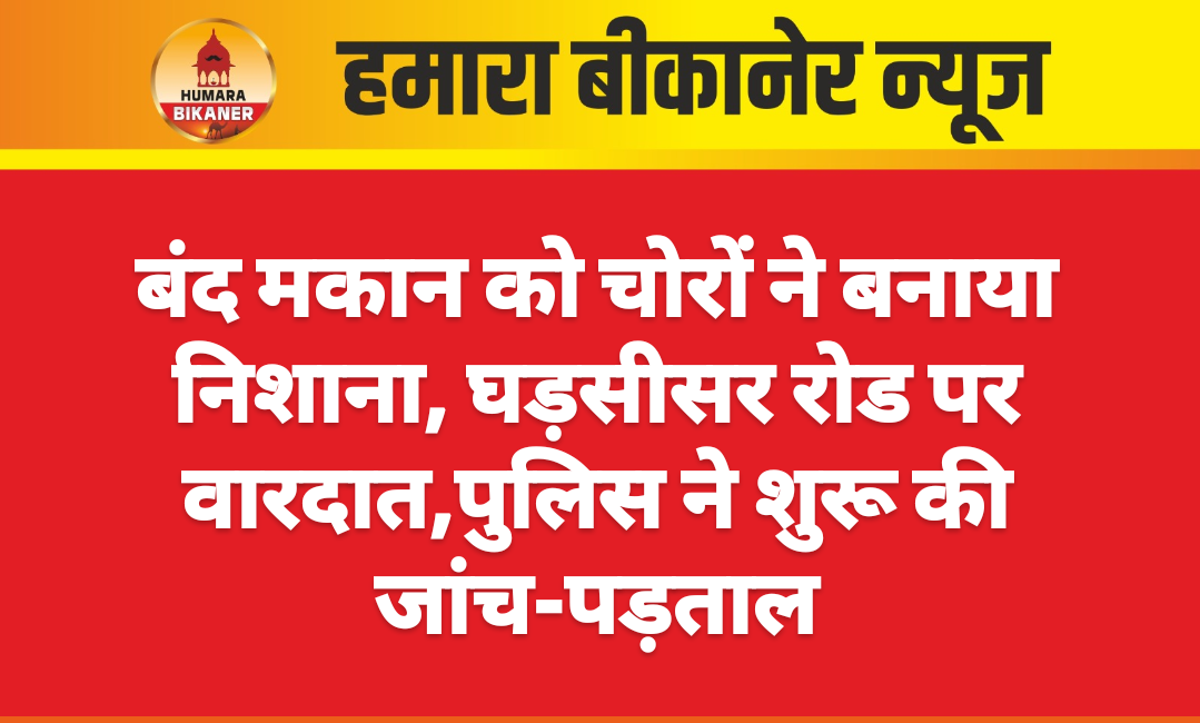 बीकानेर। शहर के गंगाशहर थाना क्षेत्र में चोरी की वारदात हुई है, जहां चोरों ने एक बंद मकान को निशाना बनाते हुए चोरी की वारदात को अंजाम दिया है। घटना घड़सीसर रोड़ स्थित पन्नालाल दुग्गड़ के मकान में हुई है। इस संबंध में पुलिस को सूचित किया गया, जिसके बाद सीआई परमेश्वर सुथार मय टीम के साथ मौके पर पहुंचे और जांच पड़ताल शुरू की।