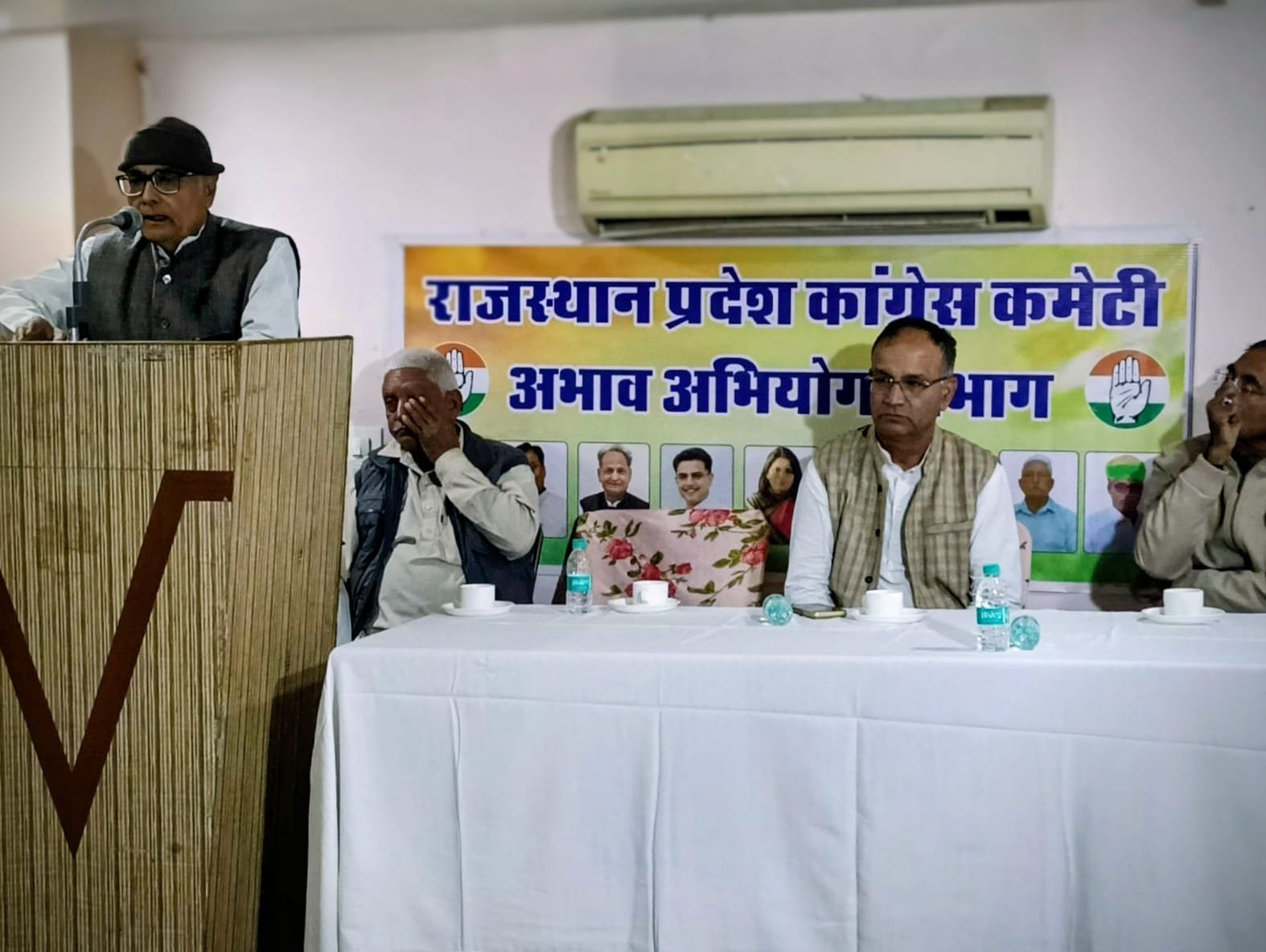 राजस्थान प्रदेश कांग्रेस कमेटी अभाव अभियोग की एक आवश्यक बैठक स्थानीय वृंदावन होटल रीजेंसी में आयोजित की गई कांग्रेस के प्रदेश अध्यक्ष गोविंद सिंह डोटासरा एवं अभाव अभियोग विभाग की प्रदेश अध्यक्ष योगिता शर्मा के निर्देशानुसार वोट चोर गद्दी छोड़ अभियान के तहत 14 दिसंबर को प्रस्तावित रैली रामलीला मैदान के संदर्भ मेंअहम बैठक आयोजित की गई इस अवसर पर राजस्थान प्रदेश कांग्रेस के प्रदेश उपाध्यक्ष नित्यानंद पारीक ने अपने संबोधन में कहा कि राहुल गांधी के नेतृत्व में सभी कांग्रेस कार्यकर्ताओं को कांग्रेस का हाथ मजबूत करने की आवश्यकता हे वोट चोर गद्दी छोड़ के अभियान के अंतर्गत आगामी 14 दिसंबर को दिल्ली में प्रस्तावित रामलीला मैदान में महा रैली को सफल बनाना हमारी प्राथमिकता हे बैठक की अध्यक्षता शहर कांग्रेस के अध्यक्ष मदन मेघवाल ने की इस अवसर पर मदन मेघवाल ने कहा कि देश में संविधान के मूल्यों पर हो रहे प्रहार के खिलाफ वोट चोरी के माध्यम से वोट चोरी को लेकर प्रत्येक नागरिक को सचेत व सावधान रहने की जरूरत है दिल्ली रैली को सफल बनाने में कार्यकर्ता जी जान से लग को राहुल गांधी के हाथ को मजबूत करें माइनॉरिटी के चंडीगढ़ गढ़ प्रभारी सलीम भाटी ने कहा कि देश में भाजपा द्वारा लोकतंत्र की हत्या कर संवैधानिक संस्थाओं के द्वारा डरा धमकाकर देश में एक अलग माहौल बनाने की कोशिश की जा रही जिसे बर्दाश्त नहीं किया जाए गा राहुल गांधी जी ने देश में यात्राओं के माध्यम से जनता को जगाने की कोशिश कर रहे हे। कांग्रेस नेता नितिन वत्स ने संबोधन में कहा कि देश में अराजकता का माहौल बी जे पी ने बना रखा हे वोट चोरी के माध्यम से सत्ता पर काबिज हो रही हे इस अभियान की गति देकर जवाब देना हे ।प्रदेश कांग्रेस के अभाव अभियोग विभाग के महासचिव गौरी शंकर गहलोत ने कहा कि कि कांग्रेसी कार्यकर्ता विभिन्न संसाधनों के माध्यम से प्रस्तावित रैली में भाग लेने के लिए अलग-अलग स्थान से कार्यकर्ता रवाना होंगे कांग्रेस नेता नंदलाल गहलोत ने कहा कि बीजेपी ने देश में सांप्रदायिक माहौल पैदा किया है कांग्रेस इसके लिए पुरजोर शब्दों में निंदा करती है और कार्यकर्ताओं से आह्वान किया जाता है की राहुल गांधी के हाथ मजबूत करें कार्यक्रम का संचालन करते हुए पवन राठी ने कहा कि लोकतंत्र की रक्षा के लिए कांग्रेस के कार्यकर्ता घर-घर जाकर वोटर लिस्ट की जांच कर सहयोग करे कोई नाम नहीं कटे न छूटे कार्यक्रम करते हुए कांग्रेस सेवा दल के प्रदेश संगठन सचिव लालचंद गहलोत ने अभाव अभियोग के बारे में जनता से जुड़ कर समाधान की दिशा में कामों की जानकारी दी इस अवसर पर कांग्रेस शहर सचिव मनोज चौधरी , खेलकूद प्रकोष्ठ के अध्यक्ष महबूब रंगरेज ने भी संबोधन किया कार्यक