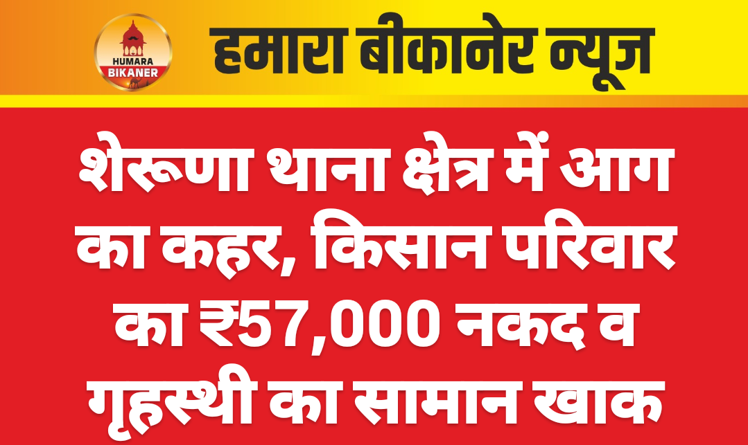 बीकानेर।किसान परिवार की ढ़ाणी मे आग लग जाने से सामान जलकर राख हो जाने की खबर सामने आयी है। घटना शेरूणा पुलिस थाना क्षेत्र से जुड़ी है। जहां पर समंदसर निवासी भूराराम की ढ़णी में आग लग गयी। भूराराम के अनुसार सोमवार की शाम को करीब 5 बजे के आसपास उसकी ढाणी में अचानक से आग लग गयी। इस दौरान उसका परिवार ढ़ाणी में काम कर रहा था। भूराराम के अनुसार अचानक ढ़ाणी में आग लगने उसका झोपड़ा जलकर राख हो गया। इस दौरान अंदर रखे हुए करीब 57 हजार रूपए, गृहस्थी का सारा सामान, गहने, पशुओं के लिए रखा चारा सहित अन्य सामान जल गया। ग्रामीणों ने उचित मुआवजे की मांग की है।