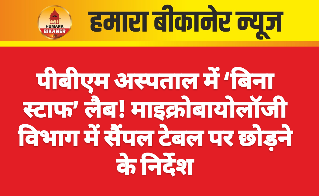 बीकानेर। संभाग के सबसे बड़े अस्पताल पीबीएम हॉस्पिटल में अव्यवस्थाओं का आलम एक बार फिर सामने आया है। अस्पताल की माइक्रोबायोलॉजी लेब में बिना स्टाफ के ही जांच होने का मामला प्रकाश में आया है। लेब में सैंपल देने वालों को निर्देश दिया गया कि “टेबल पर सैंपल टेबल पर रख दो और जांच कल ले जाना” — यानी पूरे सिस्टम का संचालन बिना किसी मानव उपस्थिति के किया जा रहा था।