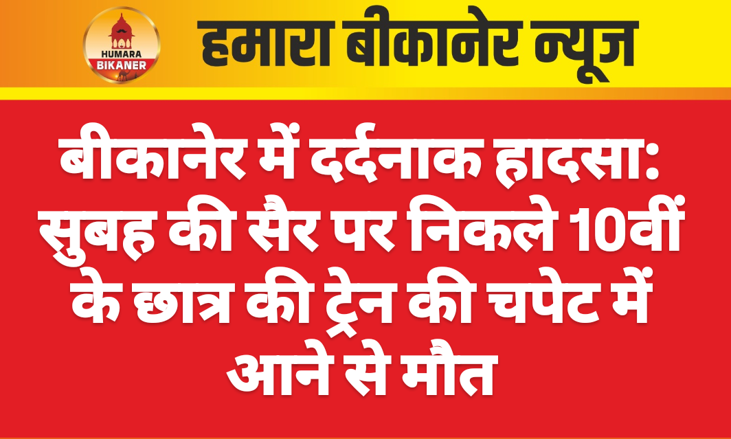 बीकानेर। बुधवार सुबह मुक्ताप्रसाद थाना क्षेत्र में एक दर्दनाक हादसे में 10वीं कक्षा के छात्र की मौत हो गई। जानकारी के अनुसार, ऊन मंडी के पास पुलिया के नीचे घूमने के लिए निकला 18 वर्षीय युवक छेलूराम, निवासी बरजू हाल बजरंग धोरा, ट्रेन की चपेट में आने से मौके पर ही दम तोड़ गया।
