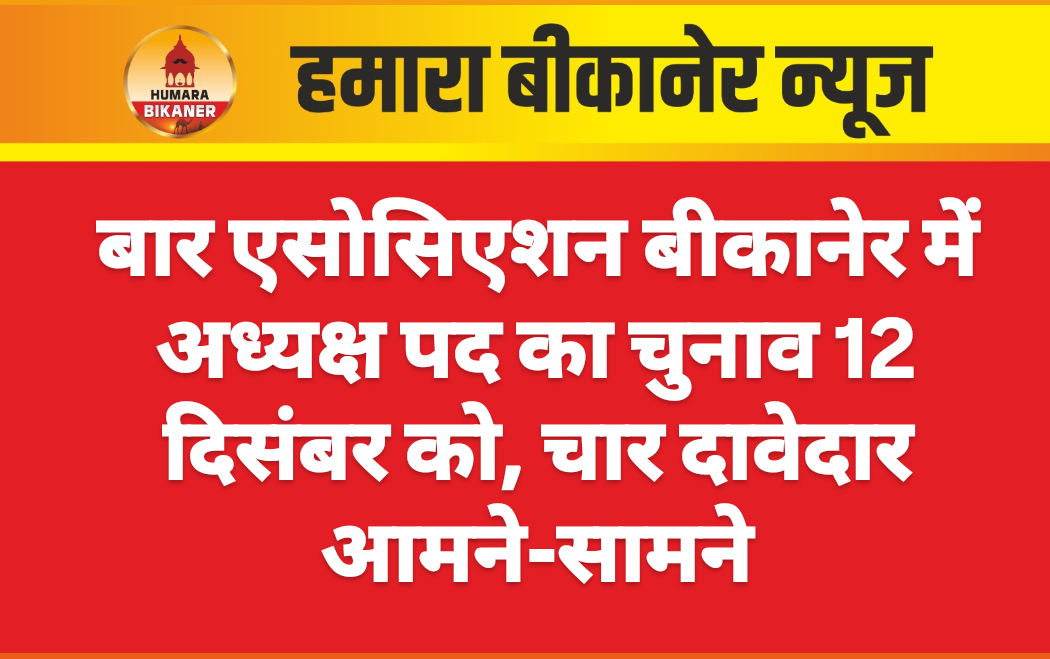 बीकानेर। बार एसोसिएशन बीकानेर के अध्यक्ष पद का चुनाव 12 दिसम्बर को होंगे। इसके लिए दो हजार दो सौ से ज्यादा एडवोकेट वोट देंगे। इसके लिए 5 अधिवक्ताओं ने अध्यक्ष पद की उम्मीदवारी पेश की, जिसमें एक ने बुधवार को नाम वापस ले लिया। इसके बाद चार उम्मीदवार मैदान में रह गए हैं। उधर, प्रचार के लिए दावेदारों ने अपने चुनाव कार्यालय बना लिए हैं और दिनभर अदालतों में प्रचार जोरों पर चल रहा है। अध्यक्ष पद के लिए पूर्व अध्यक्ष अजय पुरोहित, तेज करण सिह राठौड़, सुखाराम मेघवाल एवं सकिना बानो ने उम्मीदवारी पेश की है। बुधवार को दोपहर दो बजे तक उम्मीदवारों के नाम वापस लेने की अंतिम तिथि थी। जिसमें एडवोकेट हनुमान प्रसाद शर्मा ने अपना नामांकन विदड्रा कर लिया। अब अध्यक्ष पद के लिए चार प्रत्याशी मैदान में है।