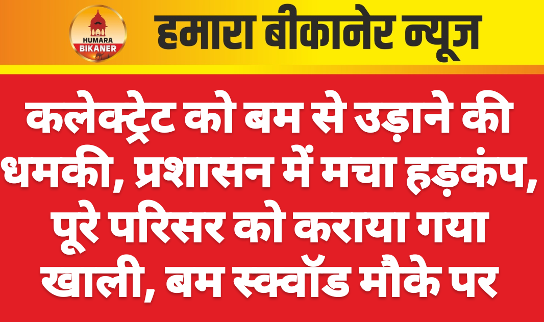 बीकानेर। लगातार प्रदेशभर में बम से उड़ाने की धमकियां मिल रही है। लगातार धमकियों के चलते प्रशासन की दौड़भाग हो रही है। इसी बीच बीकानेर संभाग के कलेक्ट्रेट को बम से उड़ाने की धमकी मिली है। हनुमानगढ़ में कलेक्ट्रेट कार्यालय को बम से उड़ाने की धमकी मिली है। इसके बाद पूरे कलेक्ट्रेट को खाली करवाया गया है। बम स्क्वॉड को मौके पर बुलाया गया है। पूरे परिसर की तलाशी ली जा रही है।