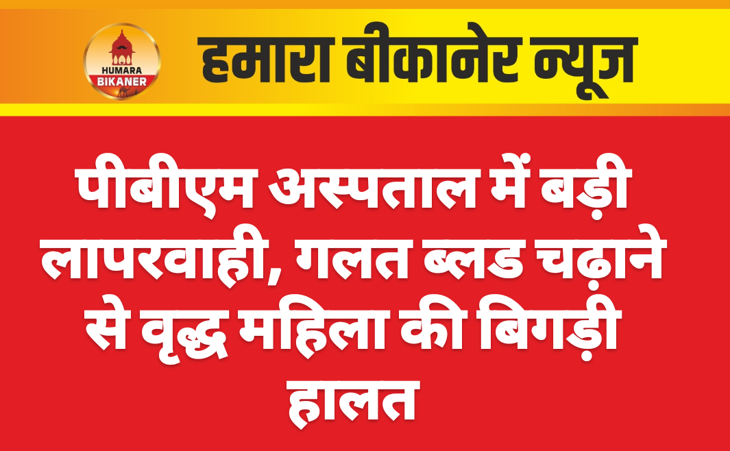 बीकानेर। पीबीएम अस्पताल की बड़ी लापरवाही का मामला सामने आया है। एक महिला के गलत खून चढाने से उनकी तबियत बिगड़ गई। मिली जानकारी के अनुसार पीबीएम अस्पताल के आचार्य तुलसी कैंसर विंग में बुधवार शाम एक बड़ी लापरवाही का मामला सामने आया। यहां इलाजरत 75 साल की वृद्ध महिला भवानी देवी को दूसरे ब्लड ग्रुप का खून चढ़ा दिया गया, जिससे उसकी तबीयत अचानक बिगड़ गई। घटना के वक्त कैंसर विंग में एक डॉक्टर और दो नर्सिंग स्टाफ मौजूद थे। बुधवार की शाम जब 75 साल की वृद्ध भवानी देवी को गलत ब्लड चढ़ाया जा रहा था, तभी वहां मौजूद एक परिजन की नजर ब्लड यूनिट पर लिखे ग्रुप पर पड़ी। परिजन ने तुरंत नर्सिंग स्टाफ और डॉक्टरों को मौके पर बुलाया। तुरंत इलाज शुरू किया गया, जिससे महिला की हालत संभल गई और एक बड़ा हादसा टल गया। इस घटना के बाद भाजयुमो शहर अध्यक्ष वेद व्यास अस्पताल पहुंचे और पूरे घटनाक्रम पर नाराजगी जताई। उन्होंने पीबीएम अधीक्षक डॉ. बी.सी. घीया से फोन पर संपर्क करने का प्रयास किया, लेकिन फोन रिसीव नहीं हुआ। बाद में जब प्रिंसिपल मौके पर पहुंचे तो उनके सामने भी लापरवाही को लेकर आपत्ति दर्ज कराई गई।