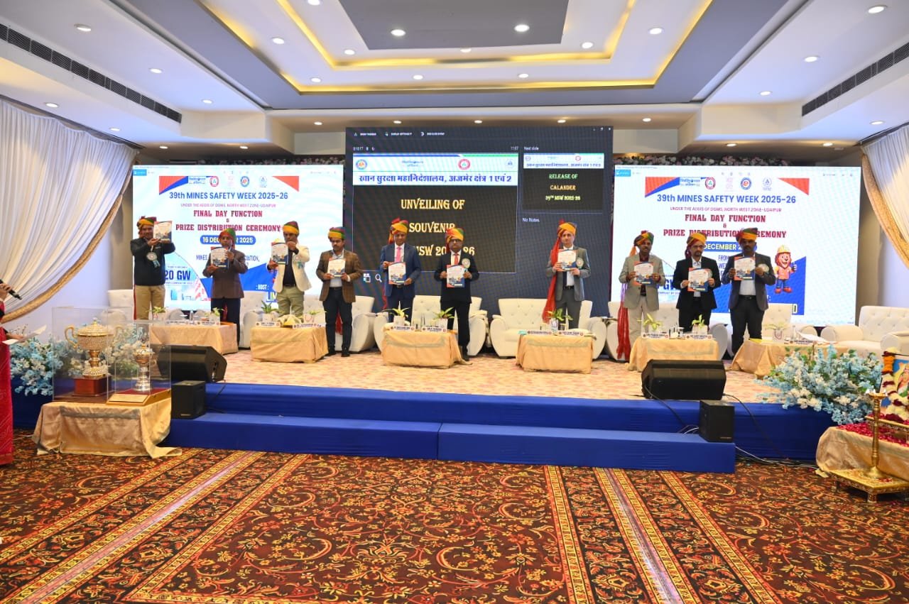 बीकानेर। खान सुरक्षा को लेकर जागरूकता और सुरक्षित कार्य संस्कृति को बढ़ावा देने के उद्देश्य से आयोजित 39वें खान सुरक्षा सप्ताह 2025-26 का भव्य समापन समारोह 16 दिसंबर को बीकानेर स्थित श्री गणेशम रिसॉर्ट में आयोजित किया गया। कार्यक्रम का आयोजन खान सुरक्षा महानिदेशालय (DGMS), उत्तर-पश्चिम जोन उदयपुर के मार्गदर्शन में अजमेर क्षेत्र-1 व 2 के तत्वावधान में किया गया, जिसकी मेजबानी एनएलसी इंडिया लिमिटेड की बरसिंहसर लिग्नाइट खान द्वारा की गई।