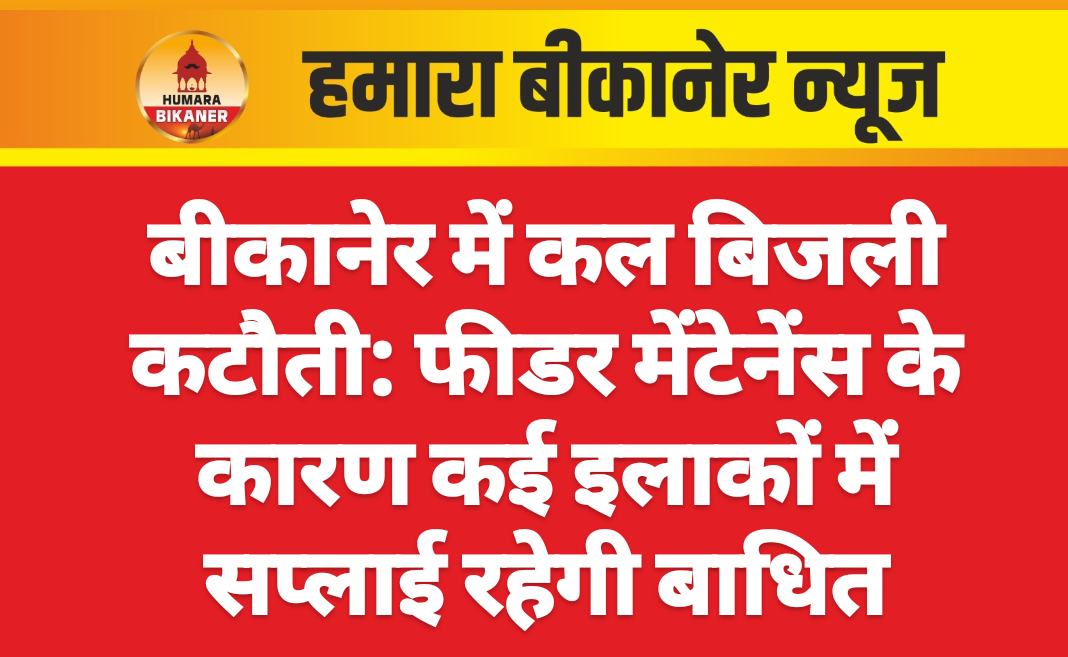 बीकानेर।फीडर रखरखाव व वृक्षों की छंटाई आदि के लिए जो कि अति आवश्यक है के दौरान कल निम्न स्थानों पर बिजली गुल रहेगी। विभाग के अनुसार शनिवार सुबह साढ़े नौ बजे से डेढ़ बजे तक चुंगी चौकी, जैसलमेर रोड़, बंगला नगर, नाल रोड़, अंसल कॉलोनी, कृष्ण विहार, एमजीएसयू, विश्वकर्मा कॉलोनी, गणेश विहार, रंगा कॉलोनी, एफसीआई गोदाम के पीछे, गणगौर स्कूल के पास, मुस्तफा मस्जिद, एमआरएफ टायर शोरूम, भाया होटल, जालू जी की खेड़ी, सरकारी स्कूल के पास, वैलिएंट स्कूली, बडू मार्केट के क्षेत्र में बिजली गुल रहेगी। वहीं 11 बजे से 1 बजे के बीच में महात्मा गांधी सरकारी स्कूल एमडीवी कॉलोनी के पास, 2-ई सेक्टर एमडीवी कॉलोनी के क्षेत्र में बिजली गुल रहेगी। इसी क्रम में दोपहर 3 बजे से 5 बजे तक सेक्टर पांच एमडीवी, स्वर्ण नगर क्षेत्र में बिजली गुल रहेगी।