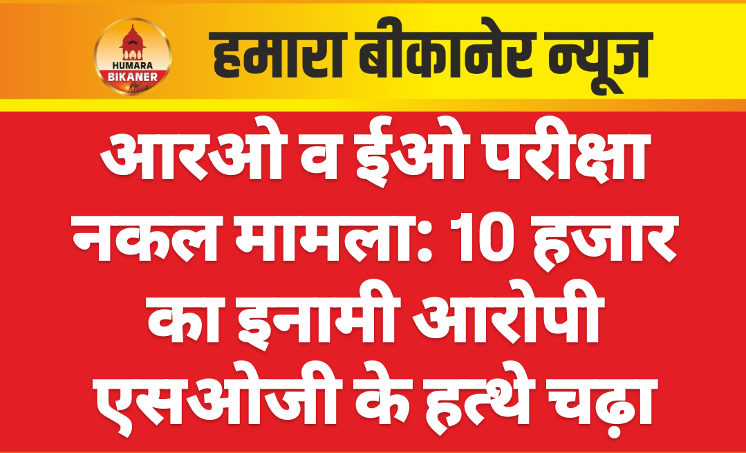 बीकानेर। राजस्व अधिकारी ग्रेड-द्वितीय एवं अधिशासी अधिकारी वर्ग चतुर्थ (स्वायत शासन विभाग) प्रतियोगी परीक्षा- 2022 में नकल के मामले में एसओजी ने बड़ी कार्रवाई करते हुए 10 हजार रुपए के इनामी आरोपी को गिरफ्तार किया है। एसओजी के एडीजी विशाल बंसल ने बताया कि बीकानेर जिले के खाजूवाला क्षेत्र के बाजूवाला निवासी सुरेश कुमार स्वामी को गुरुवार को गिरफ्तार किया गया। आरोपी परीक्षा का अभ्यर्थी था। ब्लूटुथ डिवाइस से