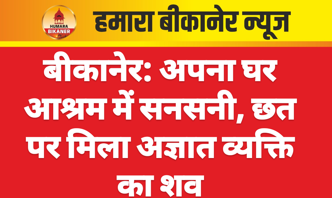 बीकानेर। जिले के नोखा पुलिस थाना क्षेत्र में स्थित अपना घर आश्रम से एक सनसनीखेज मामला सामने आया है। यहां छत से तेज बदबू आने पर जब सेवाकर्मी ऊपर पहुंचे तो छत पर एक शव पड़ा मिला। घटना 18 दिसंबर की रात की बताई जा रही है। इस संबंध में देशनोक निवासी एवं अपना घर आश्रम में कार्यरत कर्मचारी भंवरराम ने पुलिस थाने में रिपोर्ट दर्ज करवाई है। परिवादी ने बताया कि 18 दिसंबर की रात को आश्रम की छत की ओर से दुर्गंध आने लगी। जब वे छत पर पहुंचे तो वहां एक शव मिला।