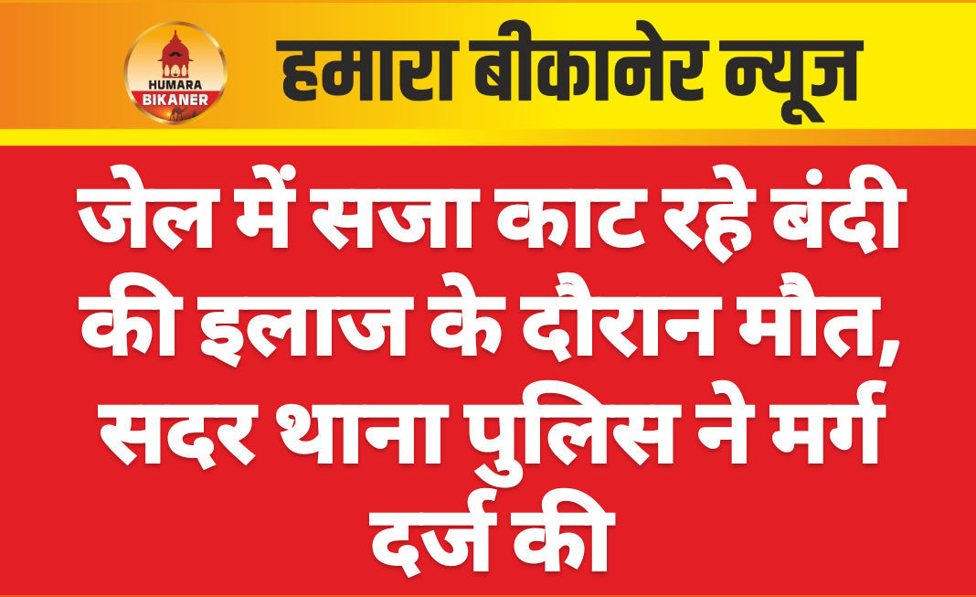 बीकानेर। जेल में सजा काट रहे बंदी की मौत हो जाने की खबर सामने आयी है। इस सम्बंध में सदर पुलिस थाने में मर्ग दर्ज की गयी है। रिपोर्ट के अनुसार करण भादू पुत्र ओमप्रकाश निवासी गंगानगर जो कि गंगानगर जेल में बंद था और सजा काट रहा था। जिसकी 13 दिसंबर को तबीयत खराब होने पर पीबीएम अस्पताल में भर्ती करवाया गया। जहां पर तबीयत ज्यादा खराब हो जाने पर 21 दिसंबर को उसकी मौत हो गयी। पुलिस ने मर्ग दर्ज कर जांच शुरू कर दी है। खबर लिखे जाने तक शव मोर्चरी में रखवाया हुआ है।