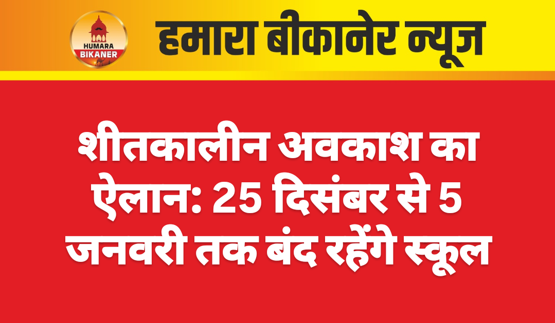 बीकानेर। राज्य के सरकारी और निजी स्कूलों में 25 दिसम्बर से सर्दी की छुट्टियां शुरू होगी जो 5 जनवरी तक रहेगी। शिक्षा विभाग के शिविरा पंचांग के मुताबिक स्कूलों में शीतकालीन अवकाश की छुट्टियां 25 दिसंबर से 5 जनवरी तक निर्धारित की गई है। शीतकालीन अवकाश के बाद 6 जनवरी से स्कूल वापस खुलेंगे। बोर्ड परीक्षाएं इस बार जल्दी होने के कारण शीतकालीन अवकाश खत्म होने के बाद बकाया कोर्स पूरा कराने का शिक्षकों पर दबाव भी रहेगा।
