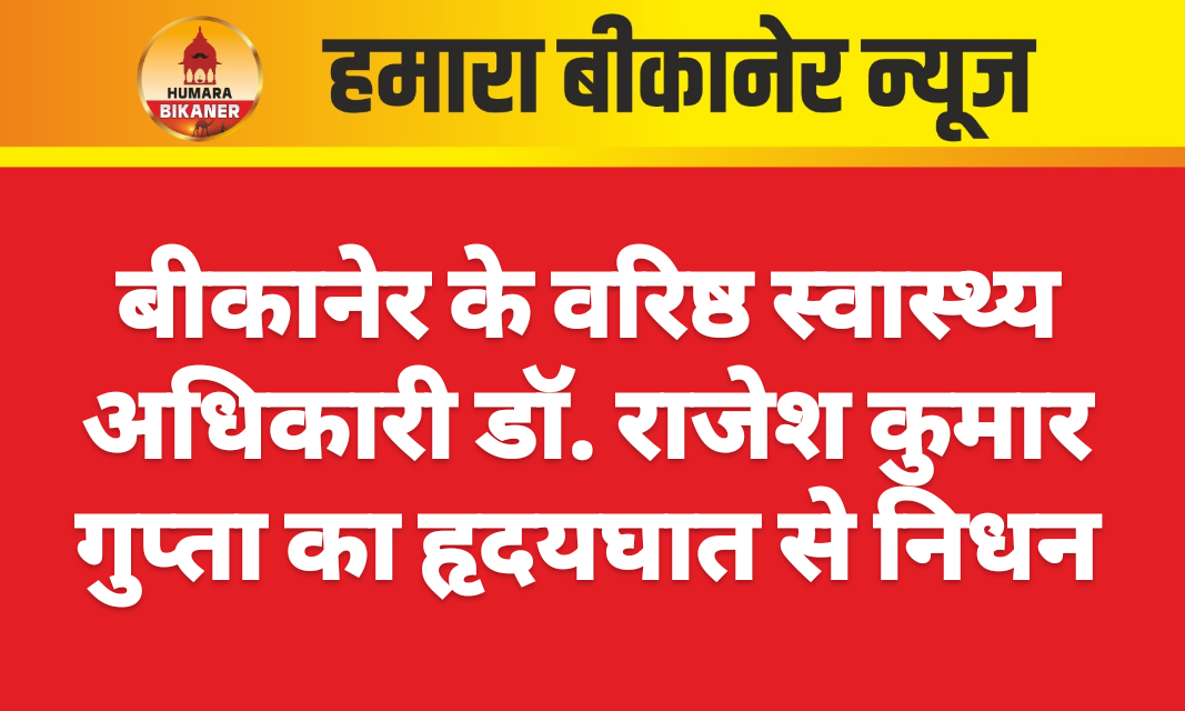 बीकानेर। बीकानेर स्वास्थ्य विभाग से जुड़ी एक अत्यंत दुखद खबर सामने आई है। जिला प्रजनन एवं शिशु स्वास्थ्य अधिकारी (आरसीएचओ) बीकानेर तथा पूर्व मुख्य चिकित्सा एवं स्वास्थ्य अधिकारी (सीएमएचओ) डॉ. राजेश कुमार गुप्ता का आज प्रातः हृदयघात से आकस्मिक निधन हो गया। उनके निधन की सूचना मिलते ही संपूर्ण चिकित्सा जगत, स्वास्थ्य विभाग और बीकानेर जिले में शोक की लहर दौड़ गई। डॉ. राजेश कुमार गुप्ता ने अपने लंबे सेवाकाल के दौरान मातृ एवं शिशु स्वास्थ्य सेवाओं को सुदृढ़ करने में महत्वपूर्ण भूमिका निभाई। स्वास्थ्य विभाग के अधिकारियों और उनके सहयोगियों ने बताया कि वे एक समर्पित, कर्मठ और संवेदनशील अधिकारी थे, जिनके मार्गदर्शन में कई जनकल्याणकारी योजनाओं का सफल क्रियान्वयन हुआ।