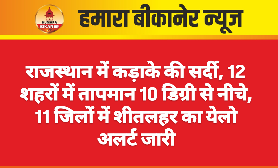 राजस्थान में तेज सर्दी का दौर जारी है। करौली, फतेहपुर सहित प्रदेश के 12 शहरों में तापमान 10 डिग्री से नीचे दर्ज किया गया। वहीं, जयपुर, दौसा, अलवर, भरतपुर सहित कई जिलों में सर्द हवाओं ने कंपकपी छुड़ा दी। मौसम विभाग ने आज प्रदेश के 11 जिलों में शीतलहर का येलो अलर्ट जारी किया है।पिछले 24 घंटे की बात करें तो सीकर, जयपुर, नागौर समेत कई शहरों में तापमान में दो दिनों में पांच से छह डिग्री सेल्सियस तक की गिरावट दर्ज की गई है। सीकर और अलवर में कई जगह बर्फ की पतली परत जम गई। वहीं, ग्रामीण इलाकों में पाला जमना शुरू हो गया है। बीते 24 घंटे में प्रदेश में सबसे कम तापमान दर्ज करौली का 3.5, फतेहपुर का 4.6, दौसा का 5, लूणकरणसर का 6.1, पाली का 5.2, वनस्थली का 5.4, अलवर का 6, चूरू का 6.4, अंता बारां का 5.2, जयपुर का 10.4, पिलानी का 7, सीकर का 7.5 डिग्री सेल्सियस पारा दर्ज किया गया।