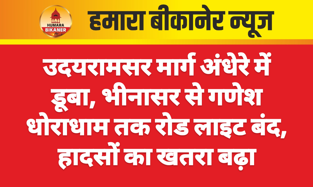 बीकानेर। शहर के उदयरामसर क्षेत्र में भीनासर पुलिस चौकी से लेकर गणेश धोराधाम तक मुख्य सड़क पर लंबे समय से रोड लाइटें बंद पड़ी होने से आमजन को भारी परेशानियों का सामना करना पड़ रहा है। यह मार्ग दिन-रात हजारों वाहन चालकों व राहगीरों की आवाजाही का प्रमुख रास्ता है, लेकिन अंधेरे के कारण यहां दुर्घटनाओं का खतरा लगातार बढ़ता जा रहा है।