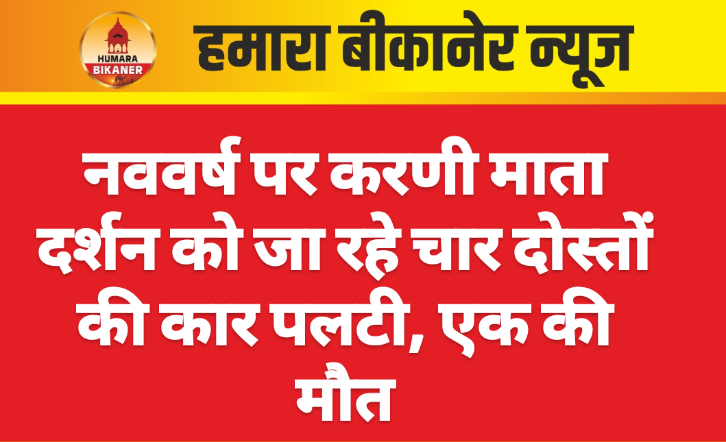 बीकानेर।नववर्ष पर देवी माँ करणी जी के दर्शन के लिए जा रहे चार दोस्तों की कार पलट जाने और एक की मौत हो जाने की खबर सामने आयी है। घटना श्रीडूंगरगढ़ से देशनोक के बीच गीगासर रोड़ की है। जहां पर श्रीडूंगरगढ़ से चार दोस्त देवी माँ करणी जी के दर्शन के लिए रवाना हुए थे। गीगासर रोड़ पर कार अंनियत्रित होकर पलट गयी। कार के पलटने से कार में सवार चालक भैरूलाल को गंभीर चोटें लगी। जिसे आसपास के लोगों और अन्य साथियों की मदद से अस्पताल ले जाया गया। जहां पर उसकी मौत हो गयी। हादसे में कार आगे से बुरी तरीके से क्षतिग्रस्त हो गयी। मृतक श्रीडूंगरगढ़ के बिग्गा का रहने वाला बताया जा रहा है।