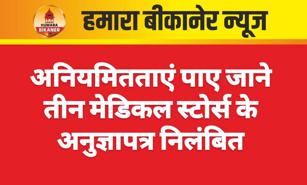 बीकानेर, 1 जनवरी। जांच के दौरान विभिन्न अनियमितताएं पाए जाने पर तीन मेडिकल स्टोर्स के अनुज्ञापत्र निलम्बित किए गए है।