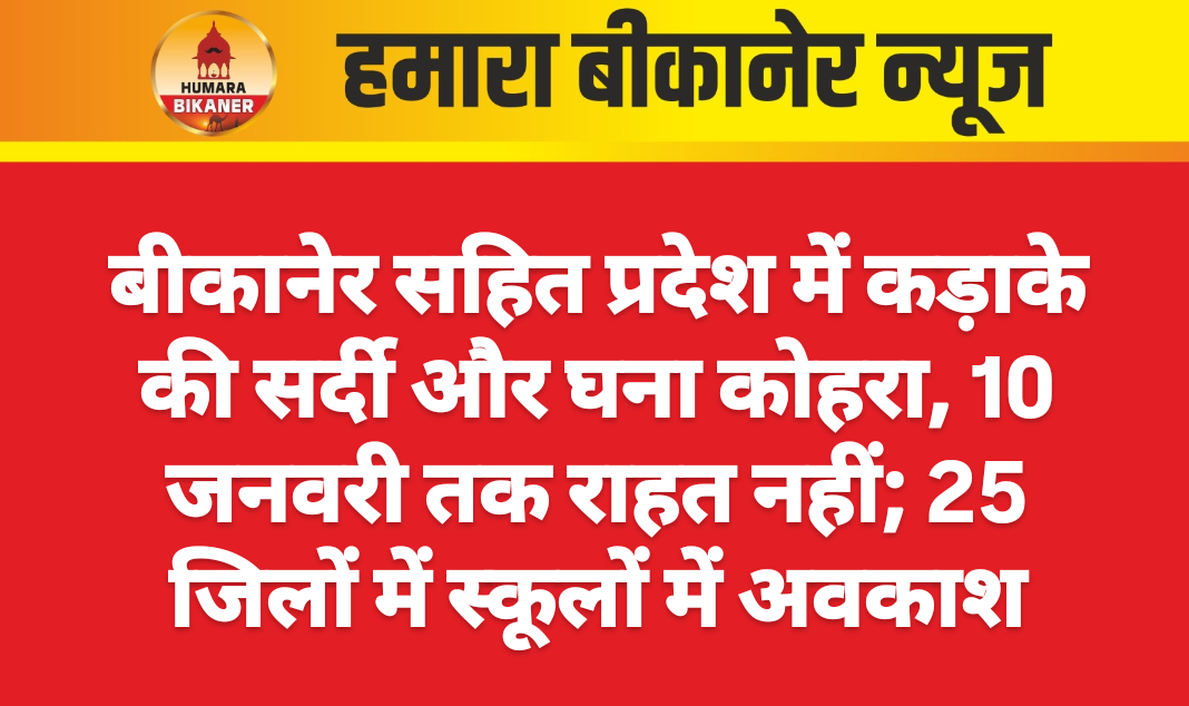 बीकानेर। प्रदेशभर में इस समय कड़कड़ाती सर्दी और घने कोहरे ने जनजीवन अस्त-व्यस्त कर दिया है। बीकानेर सहित राजस्थान के कई जिलों में पिछले एक सप्ताह से शीतलहर का तीखा असर बना हुआ है। तापमान में लगातार गिरावट और सुबह-शाम घने कोहरे की वजह से आम जनजीवन ठिठुर गया है। सर्दी से बचने के लिए लोग अलाव, हीटर और गर्म कपड़ों का सहारा ले रहे हैं। मौसम विभाग ने 10 जनवरी तक शीतलहर और कोहरे से राहत न मिलने की संभावना जताई है।